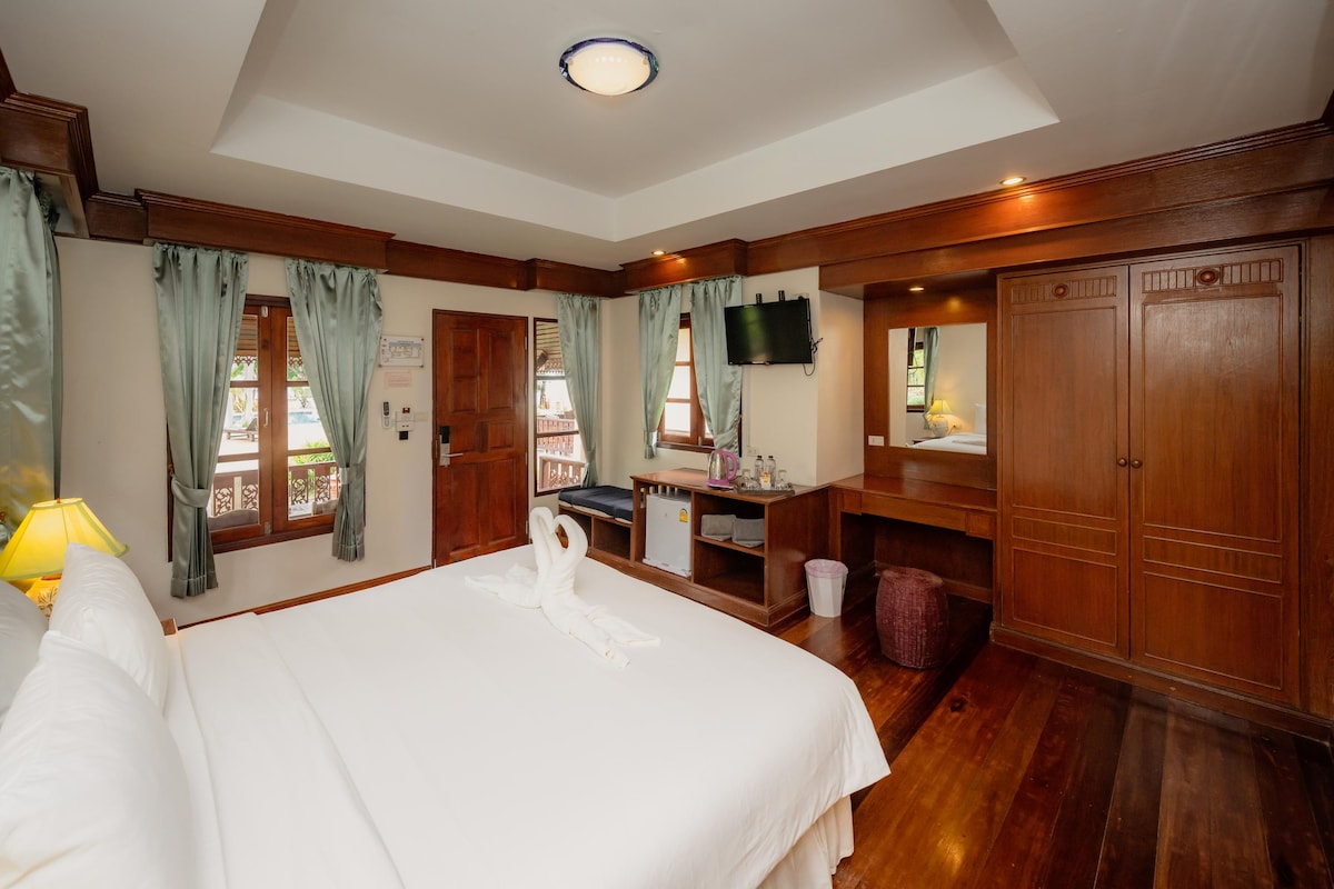 Grand Deluxe雙人房位於花園主建築的一樓,提供30平方米的空間,以及寬敞的露臺,配有日光浴一天後,您可以坐在陰涼處放鬆身心。 您的豪華雙人客房配有加大雙人牀、迷你吧、液晶電視、電水壺(每日免費茶和咖啡補充)、保險箱和空調。 浴室配備熱水淋浴間、吹風機和您可能需要的一切。