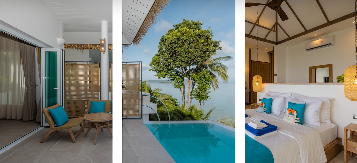 Hilltop Pool Villa with Private Pool & Andaman Sea View Escape to a private hilltop villa surrounded by lush tropical greenery and serene natural landscapes. Enjoy breathtaking panoramic views of the Andaman Sea from your own infinity pool. This spacious villa is designed for comfort and privacy, featuring a king-size bed, elegant living area, and a relaxing outdoor terrace. Perfect for couples seeking a quiet, luxurious island getaway with stunning nature and total privacy.