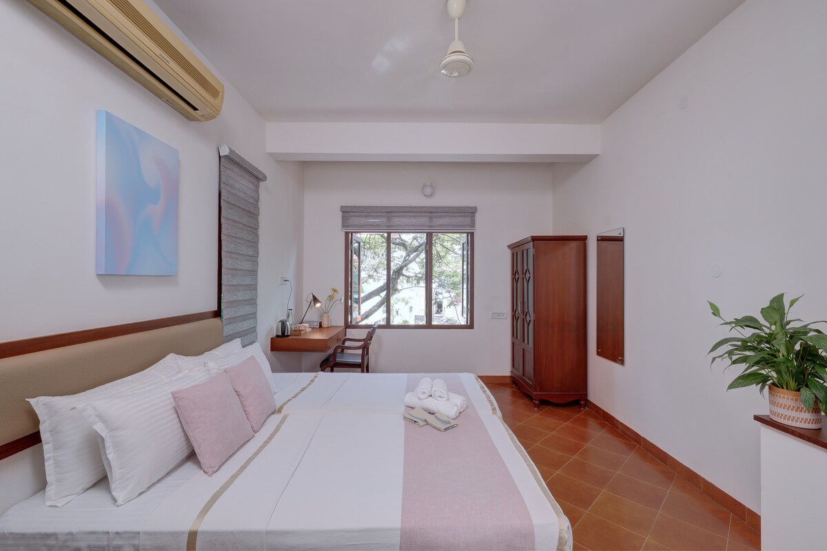 舒適的客房,最多可容納4位房客,可俯瞰花園。 距離湖邊步行路程。 我們為您提供單人房和家庭房、客廳和用餐空間。 湖泊旁邊有一個無邊泳池。 我們準備正宗的家庭式喀拉拉美食。 我們距離NH 66只有一公裏,距離機場45公裏,距離市中心10公裏。