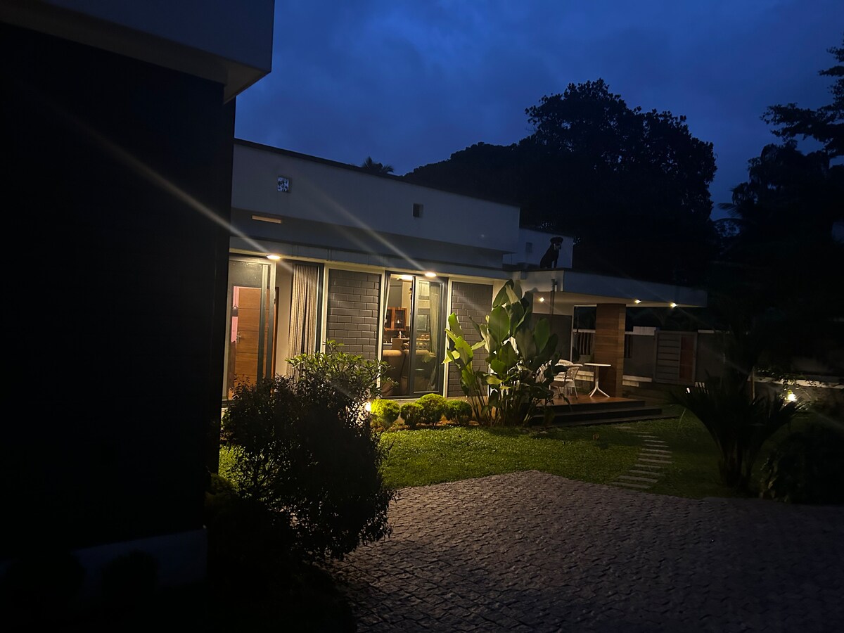 這間優質的房源空間寬敞,可以帶著全家老小(最好不超過8位成人)一同入住。 別墅由4間臥室( 3間空調/1間非空調)、2間客廳、設備齊全的廚房(配有微波爐和水壺)和5間浴室(包括浴缸、步入式淋浴間和坐浴盆)組成。 所有浴室都有(太陽能)熱水,一間公共浴室配有電暖器,以應對緊急情況。 步行即可抵達Athani鎮。 距離科欽國際機場5公裏。