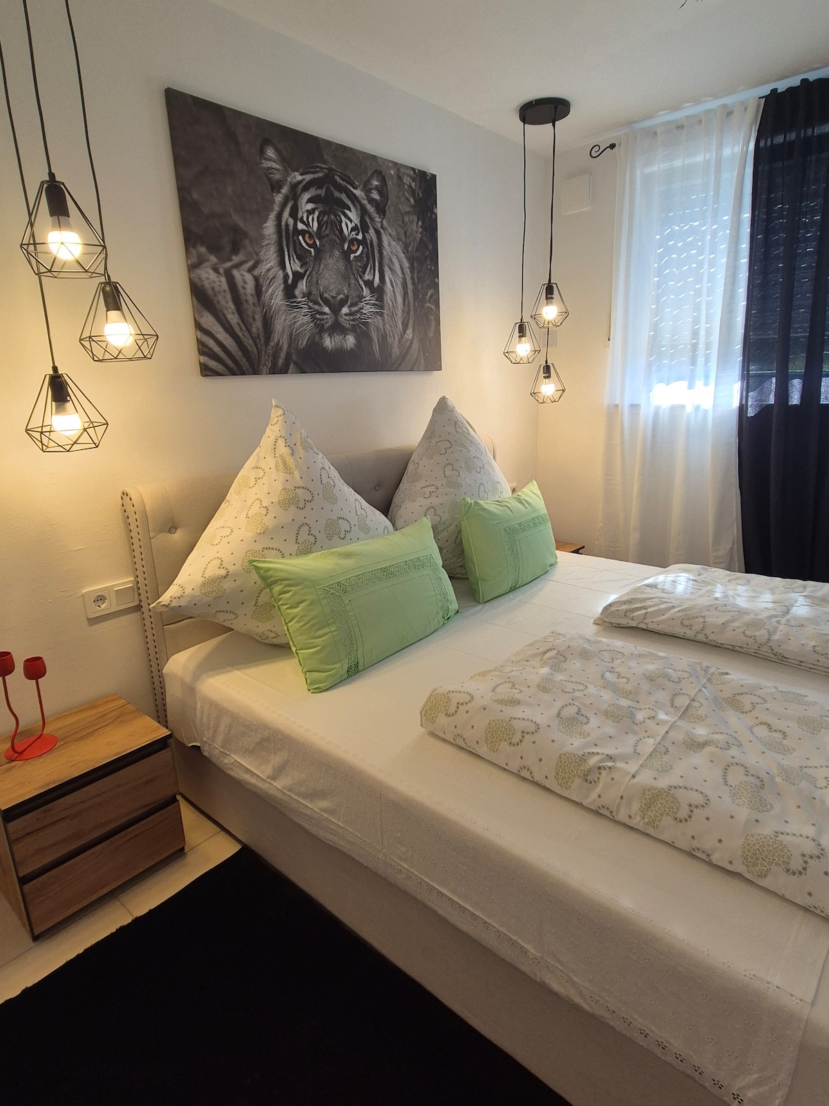 Wir erwarten Sie in einem liebevoll eingerichteten Apartment. Dieses stilvolle Apartment, mit kostenfreiem WLAN, befindet sich nur drei Gehminten vom Zentrum der Outletcity. Sie ist modern und komplett renoviert; Ihren erholsamen Schlaf finden Sie im großem Doppelbett des Schlafzimmer oder bei Bedarf auf dem geräumigen Schlafsofa (für zwei Erwachsene) im Wohnzimmer. Auf Wunsch ist ein Kinder- sowie ein Zustelbett vorgesehen.