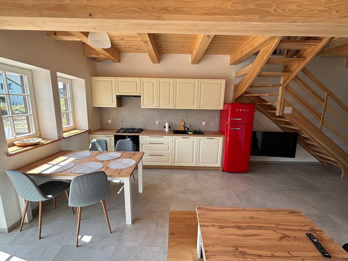 在時尚的室內裝潢中與全家人一起享受樂趣。 我邀請您來到一座以19世紀西波美拉尼亞風格建造的小木屋,並融合現代奢華(WiFi、芬蘭桑拿房、兩間浴室、配備洗碗機的廚房等)。 這個街區很受日光浴愛好者(距離海灘900公尺)、沿海步行和騎自行車的歡迎。 小木屋散發著木頭和新鮮度的氣味,外面有海濱微風。 這個房子有一個大木製露臺,有足夠的空間供遊戲和娛樂,還有烤肉架。