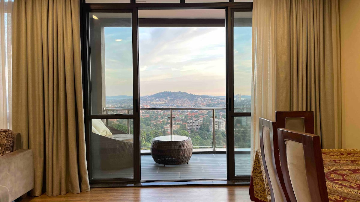 入住這間位處中心地段的現代舒適公寓,全家到哪都方便。這個地方位於熱鬧的Kololo、Lugogo和Ntinda街區的交界處,位置安全,前往餐廳、酒吧和超市都很方便。這套公寓有兩間半臥室,可容納五位房客。配備舒適住宿所需的一切設備,讓您在這個家外之家放鬆身心。