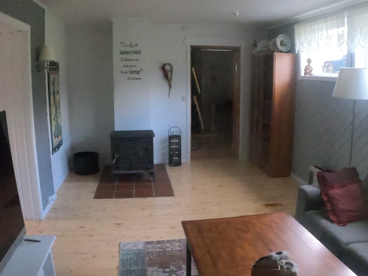 在這個寧靜的住處與家人一起放鬆身心。小木屋內有停車位。小屋面積為110平方公尺/非常適合5-6名成人入住,有自己的兒童遊戲室。光線可以從天窗照進來。電暖地板和烤箱,但木材必須由房客購買。 小木屋位於熱門的小木屋區域,有很多機會。滑雪地形、狩獵和魚。 滑雪場 0.5 公里 滑雪道和機車小徑。 攀岩公園。 咖啡廳和餐廳。 距離雜貨店Coop約0.5公里。可以購買木材用於烤箱、火 距離市區15公里