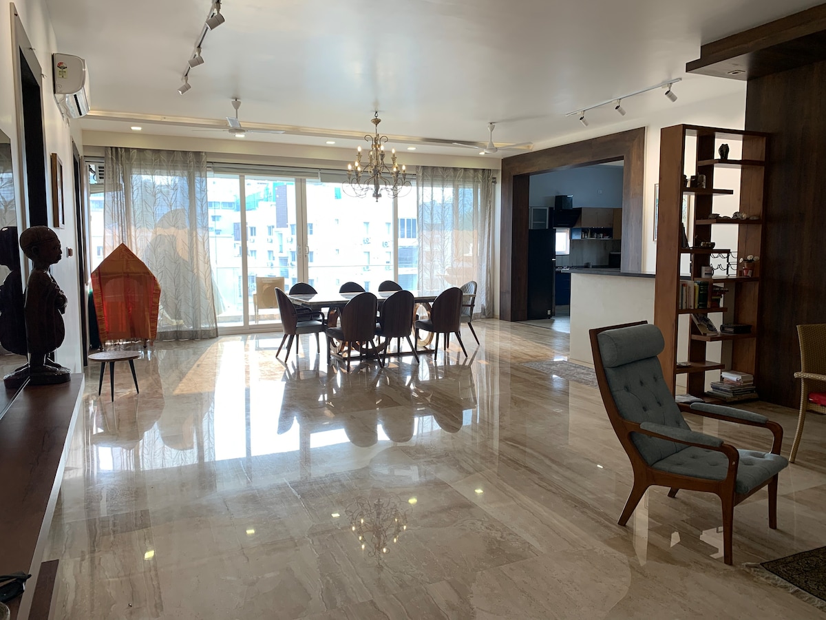 Aurora是一個風景如畫、寬敞的公寓,位於Banjara Hills Road no. 12. Aurora 佔地 2700 平方英尺,擁有 12 英尺高的天花板,為您提供其他地方罕見的舒適和奢華。房源有3間臥室和3間浴室,包括2間客廳、1間餐廳、1間設備齊全的廚房、公用事業和1個大陽臺,可舒適容納6人。 如果您有任何疑問,請與我們聯絡:8106941887。