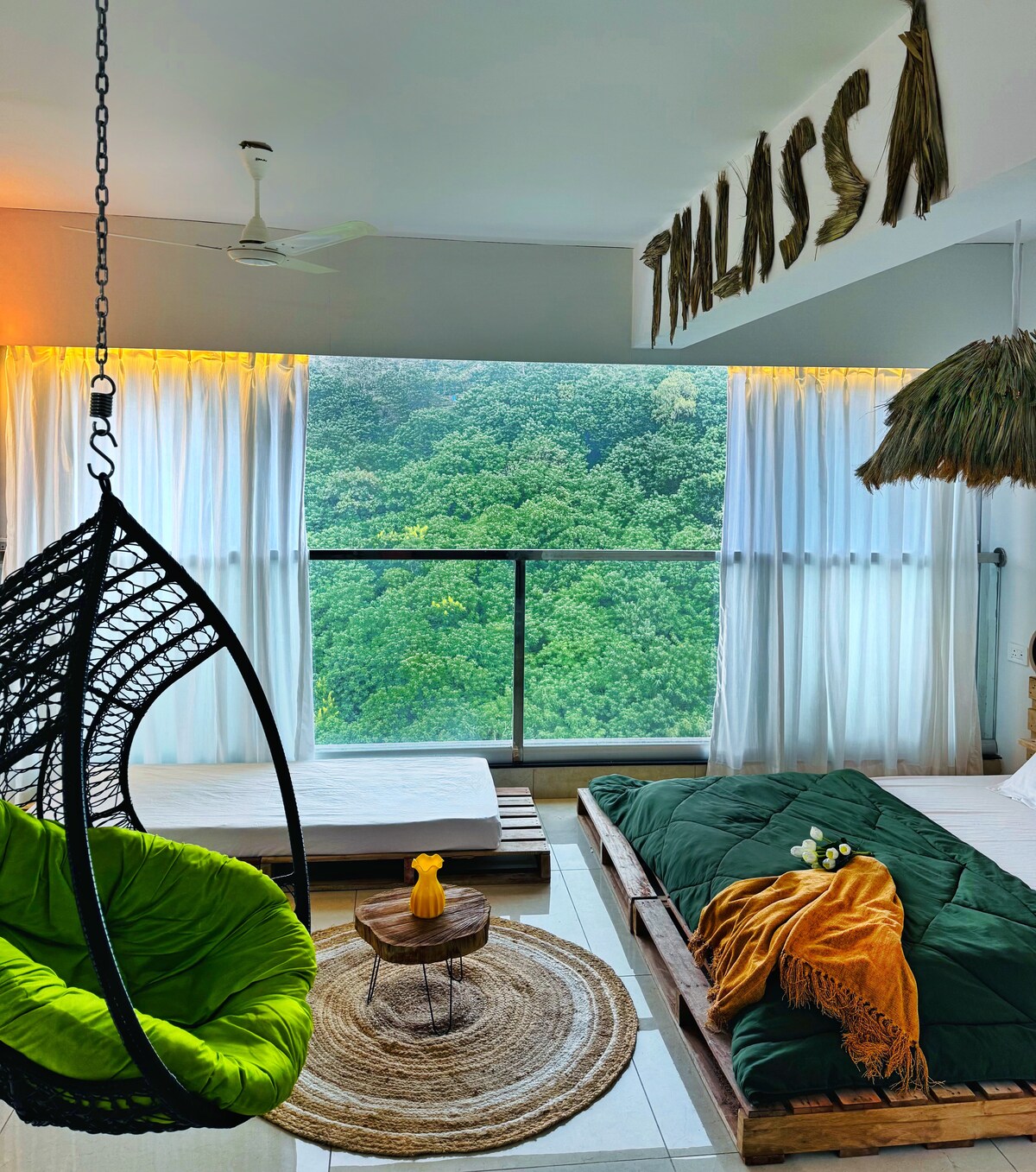 Welcome to Oraya Whether you’re planning a weekend escape or a work-from-anywhere retreat, Oraya is thoughtfully equipped and an excellent choice for longer stays. With stunning views of green hills and the open highway, this cozy getaway features warm wooden interiors, rattan cane furniture, and earthy terracotta accents bathed in sunlight. Perfect for couples or solo travelers, Oraya blends rustic charm with modern comfort—offering style, serenity, and a close connection to nature.