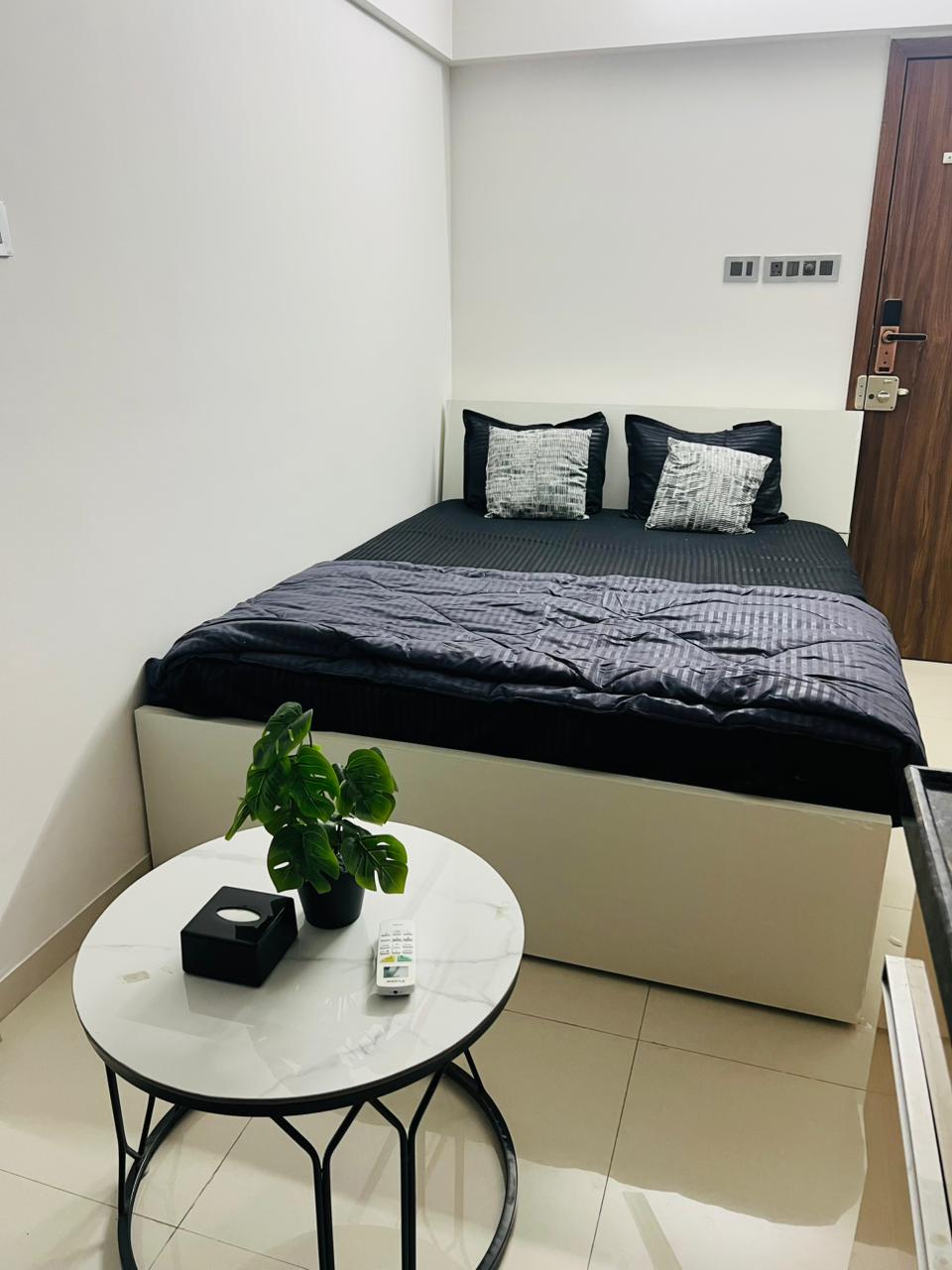•舒適的生活空間:現代裝飾,配有豪華的雙人床、沙發和用餐區。 •設備齊全的廚房:非常適合烹飪或享用早晨咖啡。 •設備與服務:高速 Wi-Fi、平面電視和空調 •黃金位置:靠近公共交通工具、購物和充滿活力的夜生活。 無論您是探索浦那的景點、品嚐當地美食,還是放鬆身心,這套單間公寓都配備了您難忘住宿所需的一切設備。 立即預訂,享受完美的度假體驗!