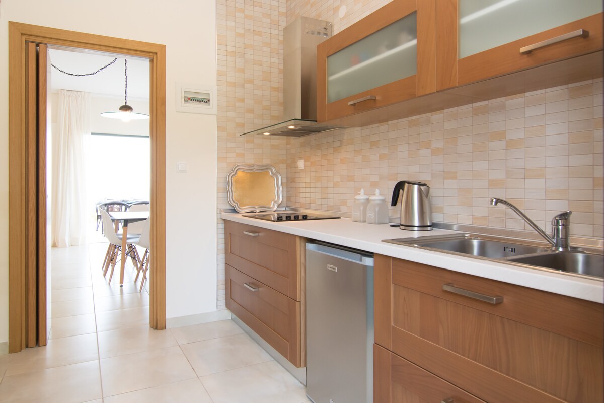 A beautiful and cozy Sunset House with a wonderful sea view, just few steps from crystal clear sea. This private house includes two bedrooms ,living room with kitchen,two bathrooms ,yard and big balcony with amazing view. It also has an outdoor shower and a barbeque in a yard. The beach is very close on foot. The main square of village with markets and restaurants is only 7 minutes' drive.