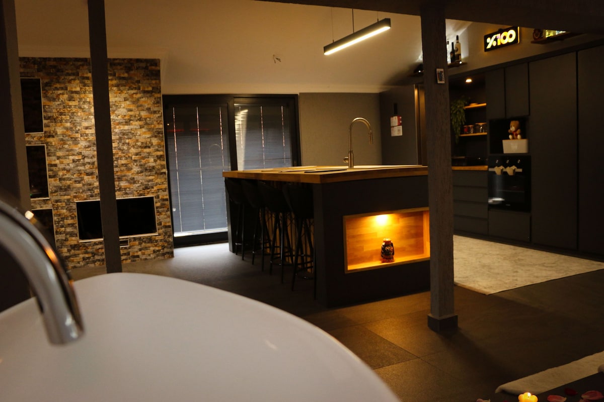 我們精心準備的公寓內有一個XXL按摩浴缸。客廳有2臺58英寸( 147平方公尺)的智慧電視,牀面向按摩浴缸。 我們的屋頂套房設計有客廳、牀、按摩浴缸和島式廚房。 沒有房間隔間等。 我們有廚房,您可以烹飪,還有一個壁爐,您可以在我們的露臺上烹飪,外面有玻璃陽臺。 我們相信您會在我們的房源住宿愉快。提前祝您假期愉快:)