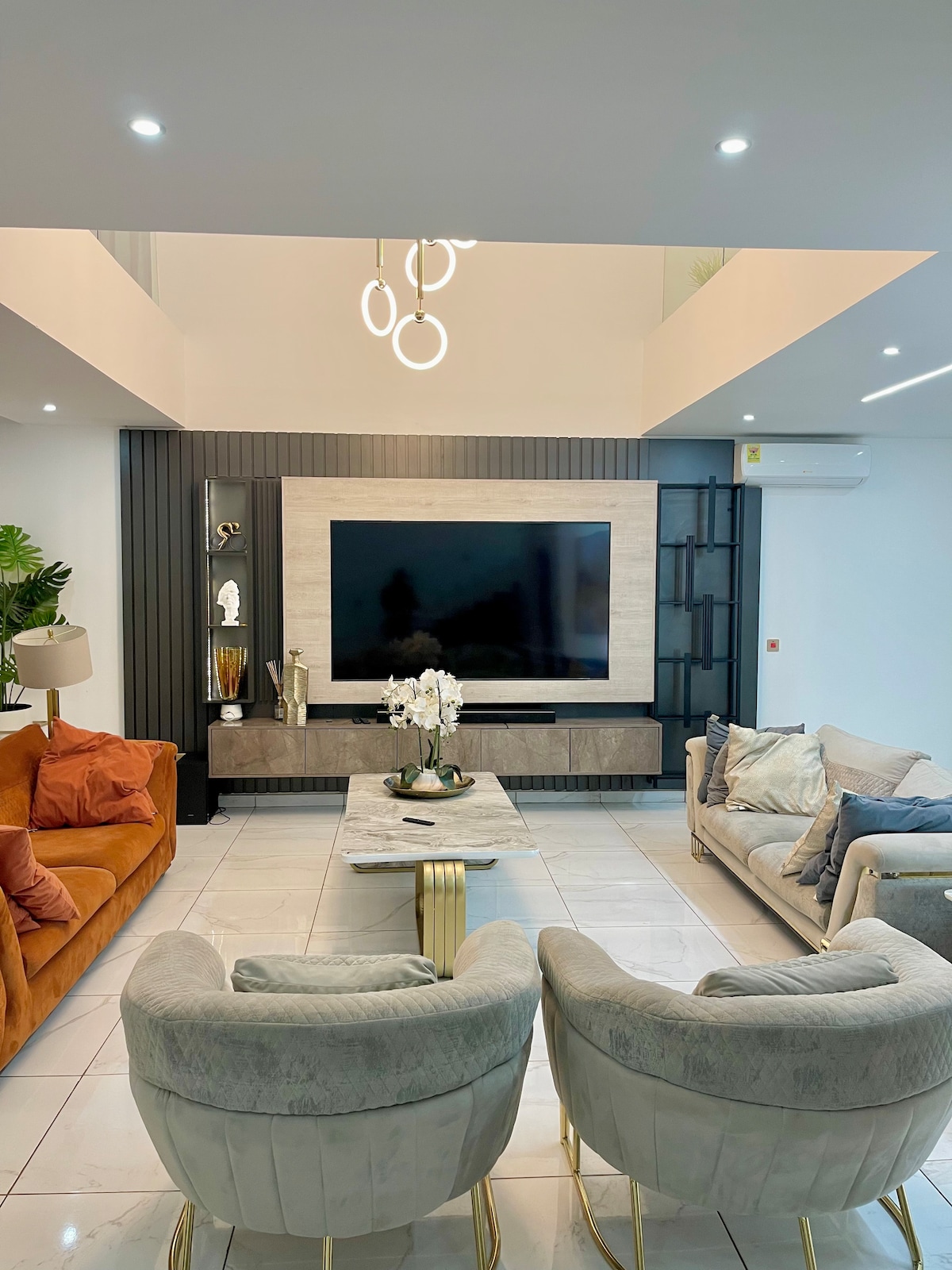 Janis Deluxe – A Luxury 3rd Floor Retreat in Lakeside, Adenta. Experience comfort and elegance. A stylish 3 bedroom, 3.5-bathroom luxury apartment in the peaceful Lakeside, Adenta. Designed for relaxation and convenience. Step into a bright, open concept living space leading to a state-of-the-art kitchen, fully equipped with premium appliances for all your culinary needs. Whether preparing a gourmet feast or a simple meal, this sleek kitchen has you covered.