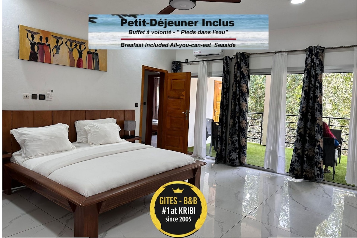 整套房子配有高檔空調、水中足部、私人海灘自主供您使用,白天和夜晚都安靜地保安 靠近漁村,距離Kribi市中心10分鐘路程 交通便利的道路, 距離主幹道300公尺 在安靜的環境中。 可應要求提供家庭主婦的可訂狀態 冰箱/冷凍庫、微波爐、爐竈和幾個廚房機器