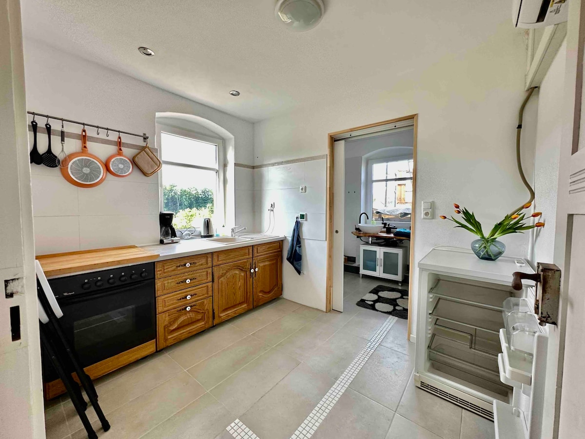 抵達並感覺良好:位於薩克森穆爾德河谷(Saxon Muldental)萊斯尼格(Leisnig)歷史悠久的老城區中心的後院浪漫-享受您的假期並感受歡迎! 位於萊比錫、德勒斯登和開姆尼茨之間,有很多文化和自然景觀可供探索。 我們的公寓「Elfriede」為您提供一間配有寬敞淋浴間的浴室、一間配有雙人床(1.80 × 2 公尺)的臥室、一間配有廚房、沙發床和用餐區的起居空間。 我們的咖啡廳庭院讓你流連忘返。