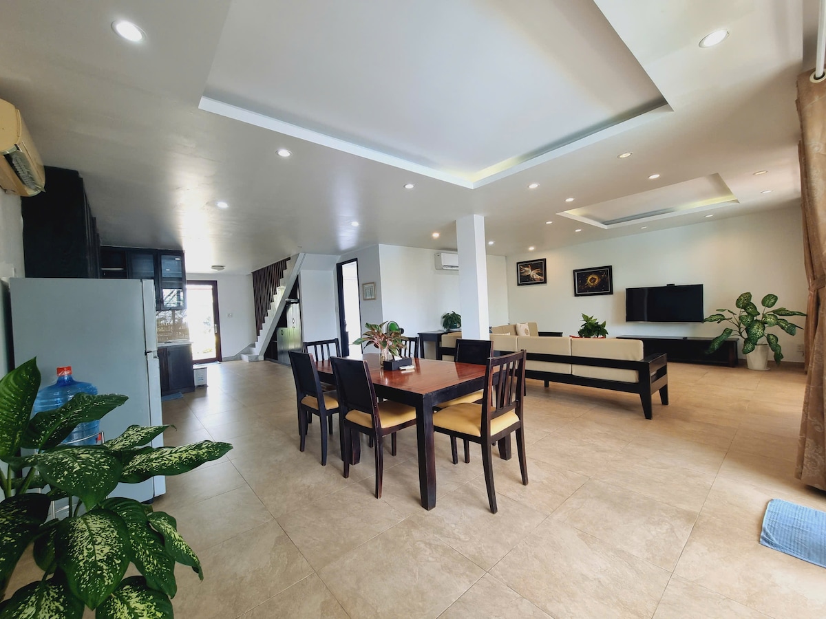 在這個平靜時尚的空間放鬆身心。 入住我們位於Kep的5床4浴室別墅,專為家庭、朋友或大型團體而設計,是一個難忘的度假勝地。 非常適合 12-20 位房客入住。 位於Kep主要道路上,但專為隱私、和平與安全而設計,享受大型泳池,配有星光晚餐、燒烤和全功能廚房的凉棚,以及鬱鬱蔥蔥的綠色。 四周都是樹木,是家庭和團體的完美度假勝地。 立即預訂,享受放鬆和難忘的住宿體驗!