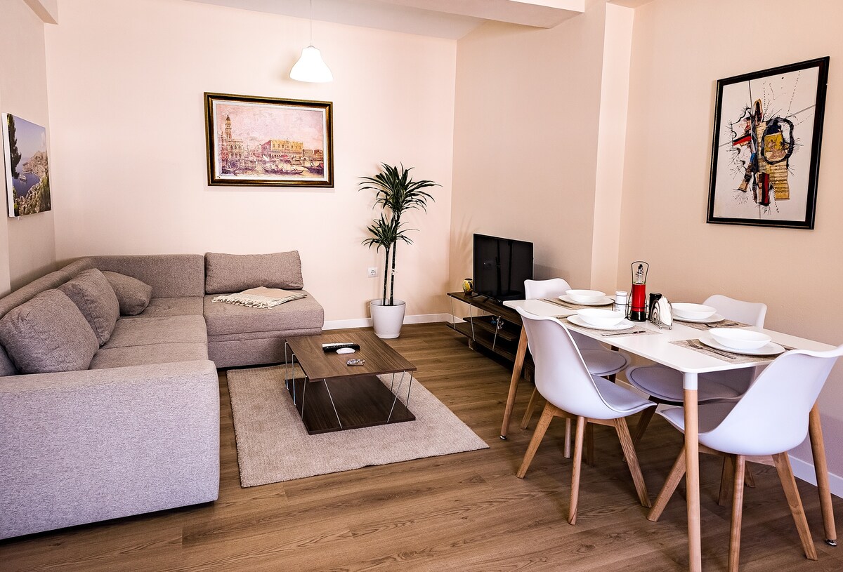 海濱豪華公寓,坐落在阿爾巴尼亞薩蘭達市中心。 由於地處中心位置,您可以輕鬆前往度過難忘假期所需的所有設施,包括餐廳、咖啡廳和商店。 公寓設計精美,設備齊全,配備了您所需的一切,讓您感受像回到家一般的舒適。您會發現舒適的客廳、設備齊全的廚房、放鬆的浴室和寬敞的陽臺,您可以在這裡欣賞大海和城市的壯麗景色。