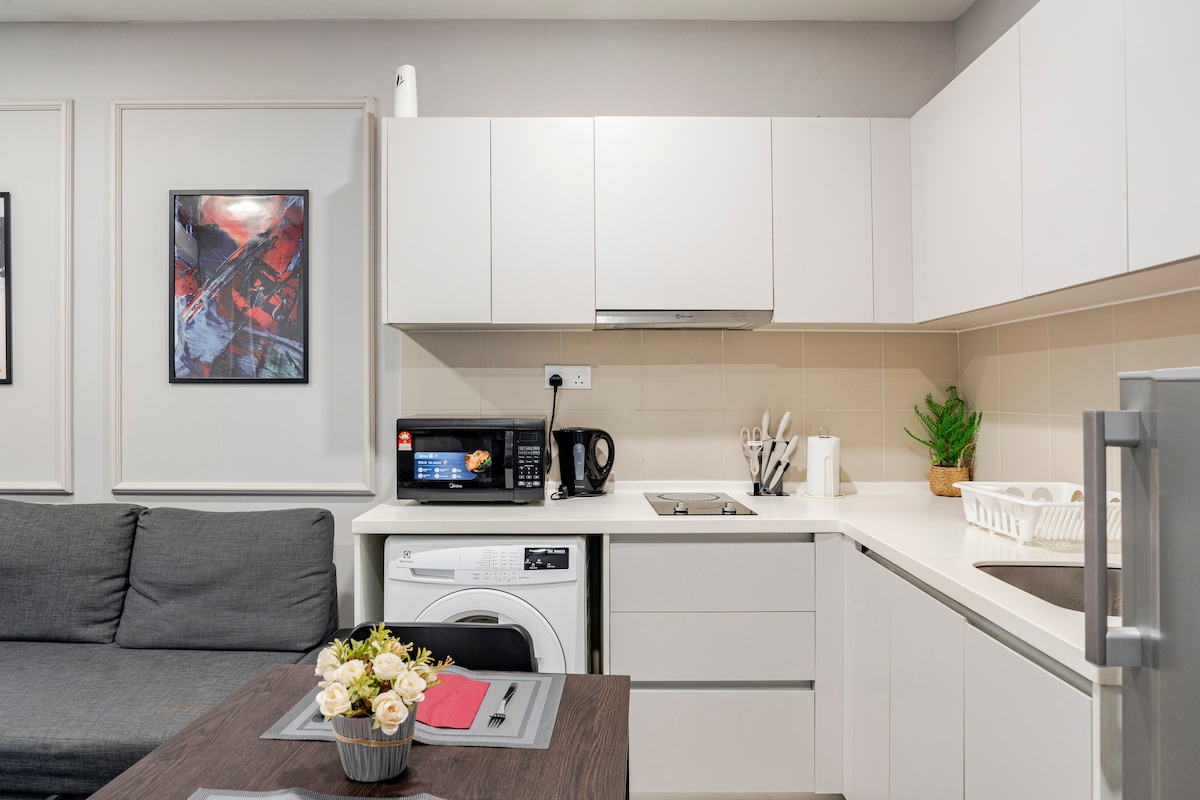 📍Pertama Residency 歡迎來到Grey City ! 這間單間公寓全新設置,充滿愛心,將現代裝飾與現代設備與現代設施相結合,體驗所有人都可以享受,尤其是按摩浴缸時刻,以及您的愛和Netflix的100英寸投影螢幕。 這個獨特的房源擁有自己的風格,為情侶提供舒適、乾淨、安靜和清爽的住宿環境。 快來欣賞灰色城市的體驗吧!