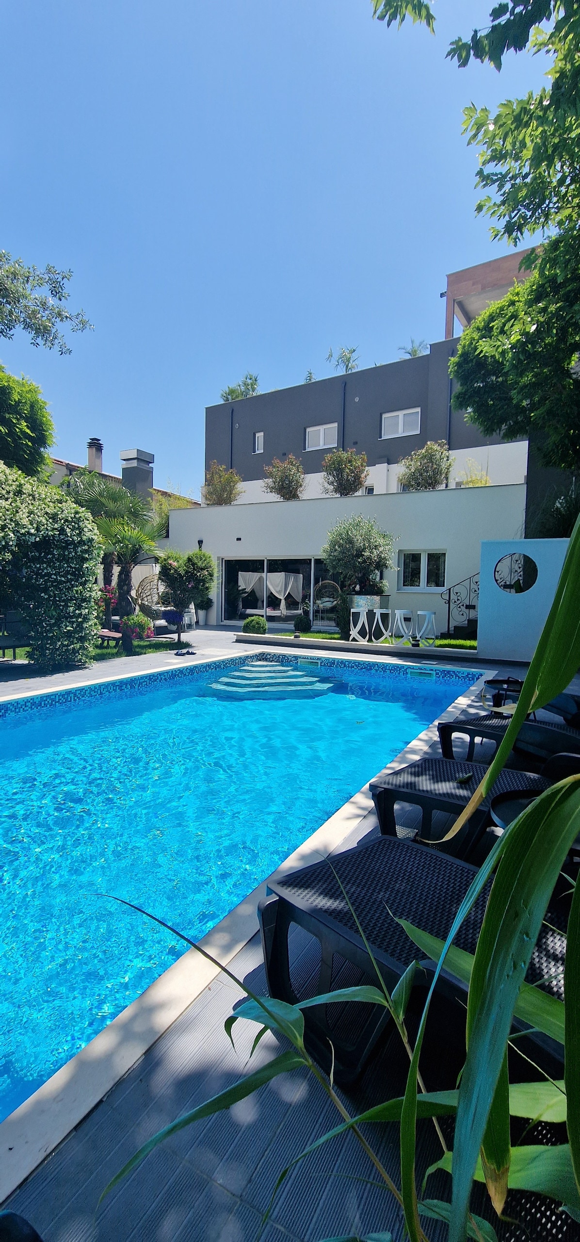 「GREEN DREAM」可供12人入住。兩間豪華、現代化且設備齊全的公寓,配有5間臥室,可使用戶外露臺,配有自己的復古廚房、廁所、小型健身房和撞球娛樂空間。 這個街區非常安靜,沒有汽車噪音。 從露臺可前往泳池和美麗的大花園,花園,花園內有風景如畫的涼亭,覆蓋著芬芳的茉莉花。房源距離斯普利特市中心和戴克里先宮僅4公里!