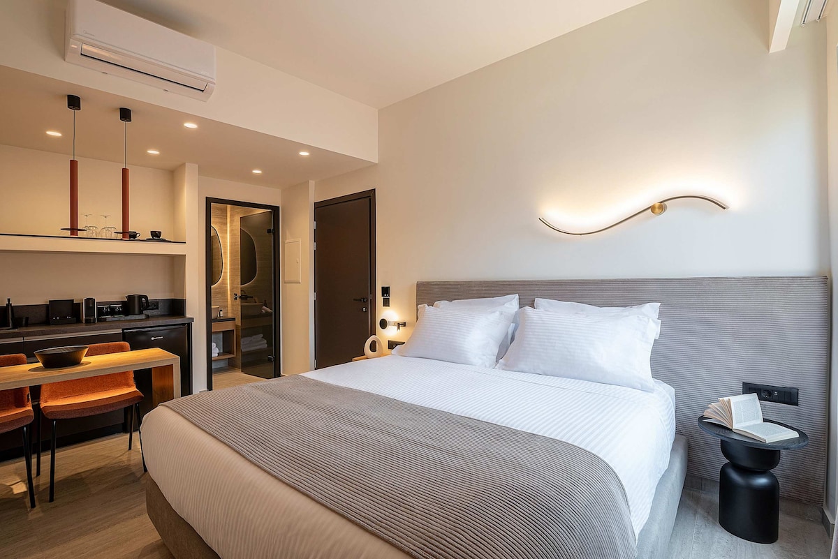 全新時尚的住宿,是「Eva Plus」房間的一部分,位於Chania舊城區的中心,位於行人街上,非常安靜,但非常靠近這座城市的大多數日常和夜間活動。 這是一個獨立的底層房間,配有雙層窗簾,保護隱私,您還可以使用可愛的屋頂露臺花園,俯瞰舊港口的景色。(屋頂花園不是私人的,它是由我們的房客共用的) 舊城區的新房間!