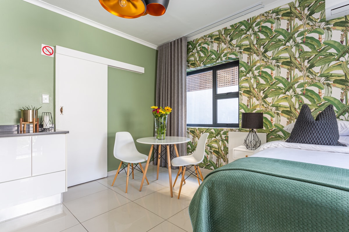 在忙碌的一天探索後,在泳池邊的躺椅上放鬆身心,欣賞桌山的景色。這間寬敞的現代單間公寓可俯瞰您專屬的豪華私人泳池露臺。沿著海灘晨間漫步,距離僅100公尺。 使用室內的書桌區域,或室外遮蔭露臺上的大型泳池邊桌子,使用我們的高速光纖遠距工作。 單間公寓配有備用照明、空調、Netflix和您自己的門式停車位。