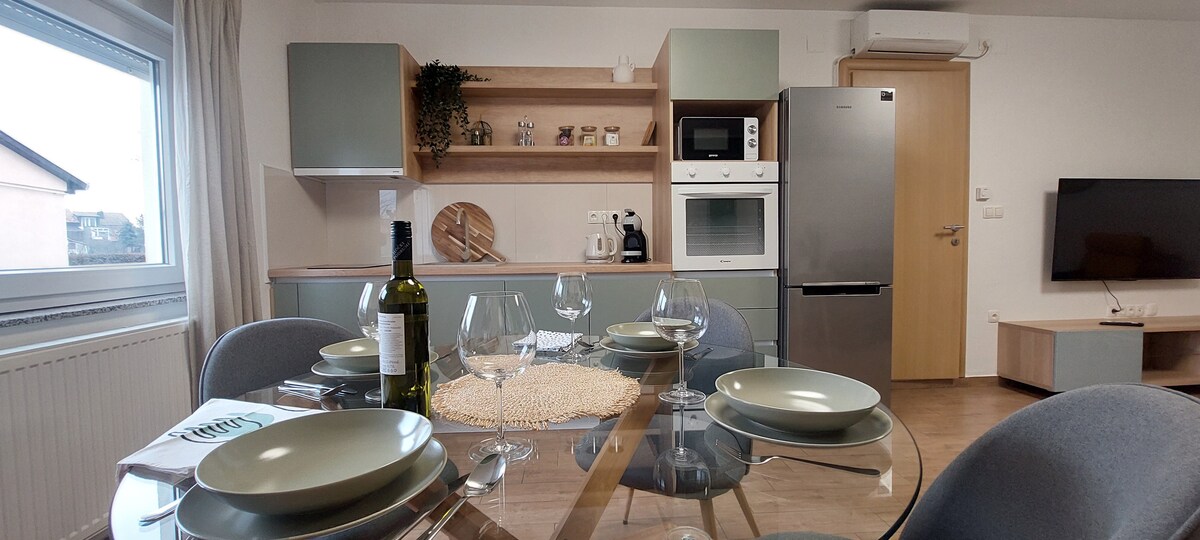 Jednosobni stan. Blizina svih bitnih sadrzaja, trgovine,kolodvor, 3 min pješice do centra grada. Osiguran privatni parking.