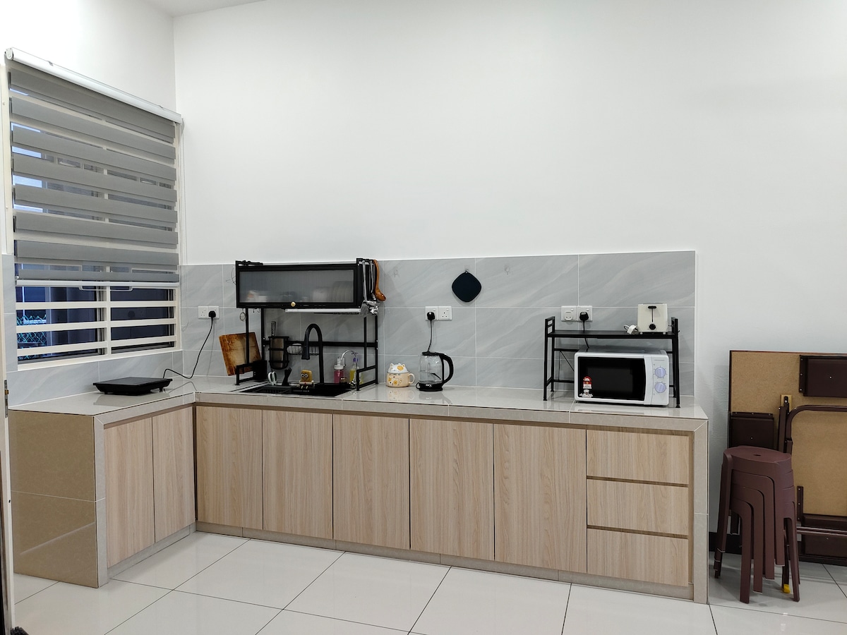 歡迎來到我們位於庫利姆市中心的寬敞半獨立房屋。 在安靜的門禁環境旁享受家一般的舒適。 臥室1 (主臥室) 2張標準雙人牀,配備1.5馬力空調+帶熱水器的獨立浴室 臥室2 2套超級單人牀,配備1.5馬力的空調 *臥室3 * 1張標準雙人牀,配備1.5馬力空調 現代時尚客廳 -配有空調的客廳 -可收看MYTV頻道的智慧電視