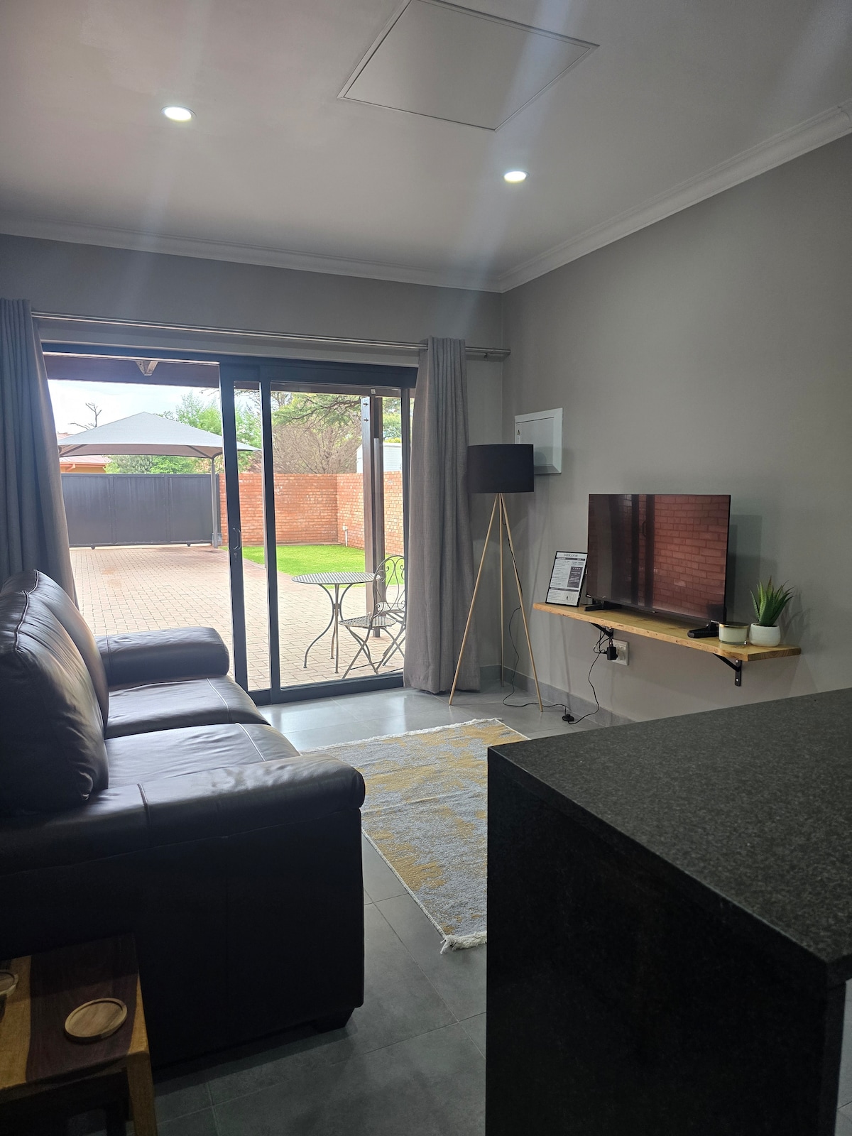 我們的房源附設私人豪華公寓。配備雙人床、小廚房和空調。 小廚房配有全套陶瓷餐具、餐具、水壺、烤麵包機、電磁爐、微波爐、空氣炸鍋和隱藏式吧台冰箱。 浴室內有巨大的水療淋浴間和柔軟的馬桶套房。 免費WiFi和免費使用Netflix、Prime Video和Showmax。房客可以登入自己的DSTV帳戶。