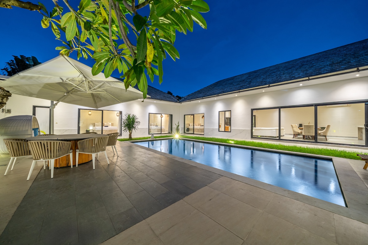 這座豪華別墅提供寧靜和時尚的天堂,並提供精心設計的額外服務,讓您在巴厘島的住宿體驗非凡、難忘,而且價格實惠。 在購物、遊泳或觀光一天後,您可以在日光浴休息室或私人泳池中放鬆身心,享受舒緩的水景。 這就是美好的生活! * 步行即可抵達海灘 * 每日清潔 * 智慧電視 * 冷熱飲水機 * 行李寄存安全存放