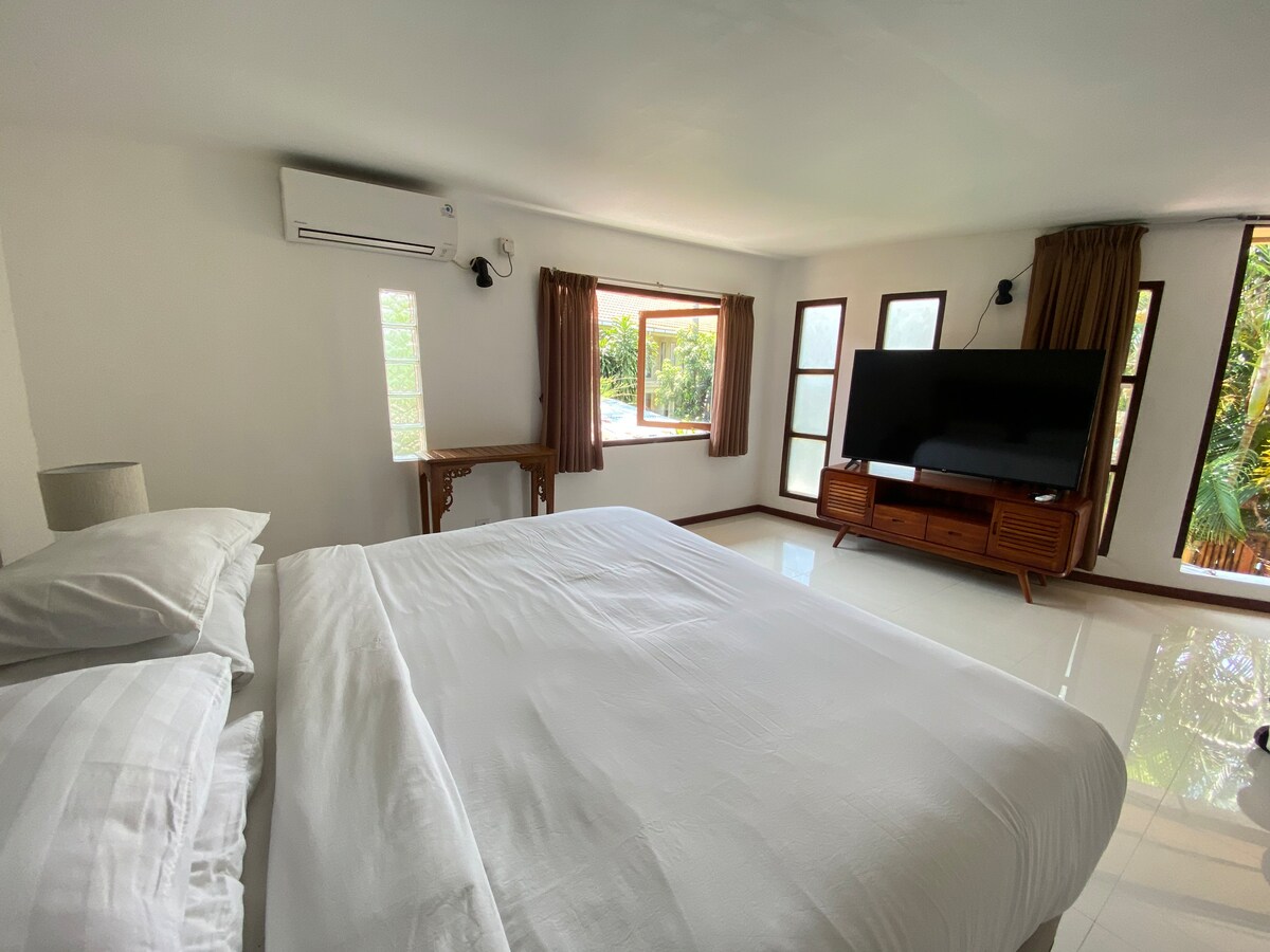 在這個寧靜的住處與家人一起放鬆身心,有5個獨立的別墅,配有私人客廳、浴室和廚房。 您也可以使用我們的戶外共用廚房、客廳和餐廳。 您可以自行烹飪早餐和餐點,因為我們提供了廚具。友善、溫馨和樂於助人的房東。 體驗當地,輕鬆前往旅遊活動,距離餐廳商場和咖啡廳和海灘不到1公裏,距離機場5分鐘。