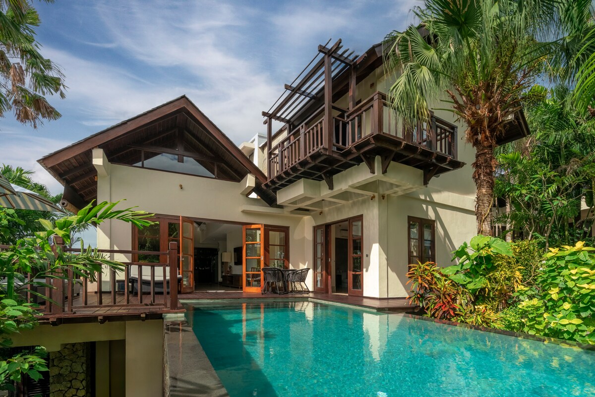 Your Own private 300m2 villa in a 5 star resort. inside one of the most luxurious hotel in nusa dua, the villa is the ground floor apartment that comes with your own private Pool and private beach access to enjoy the tropical tranquility of nusa dua. 3 bedrooms and 3 bathrooms secure privacy and confort up to 6 guests. perfect for families or large group of friends this villa stands out for his incredible 5 stars resort free access such as Private beach with transfer from hotel Lobby,GYM, SPA..