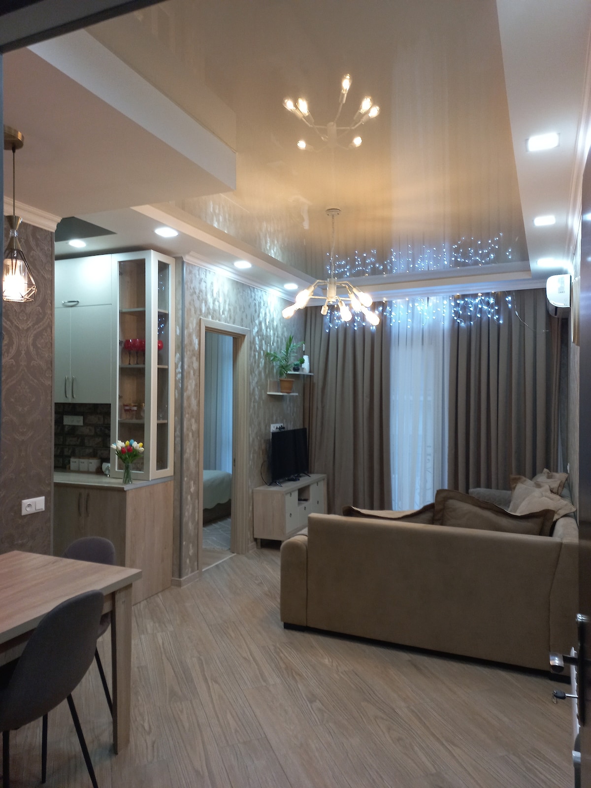Escape to your private entertainment haven in Kutaisi! Whether it's raining or scorching hot outside, our apartment is the perfect retreat to relax, unwind, and have fun, located just a ten-minute walk from the city center. Step into a stylish and comfortable apartment designed for both relaxation and entertainment. The space is your personal cinema and game room, all in one.
