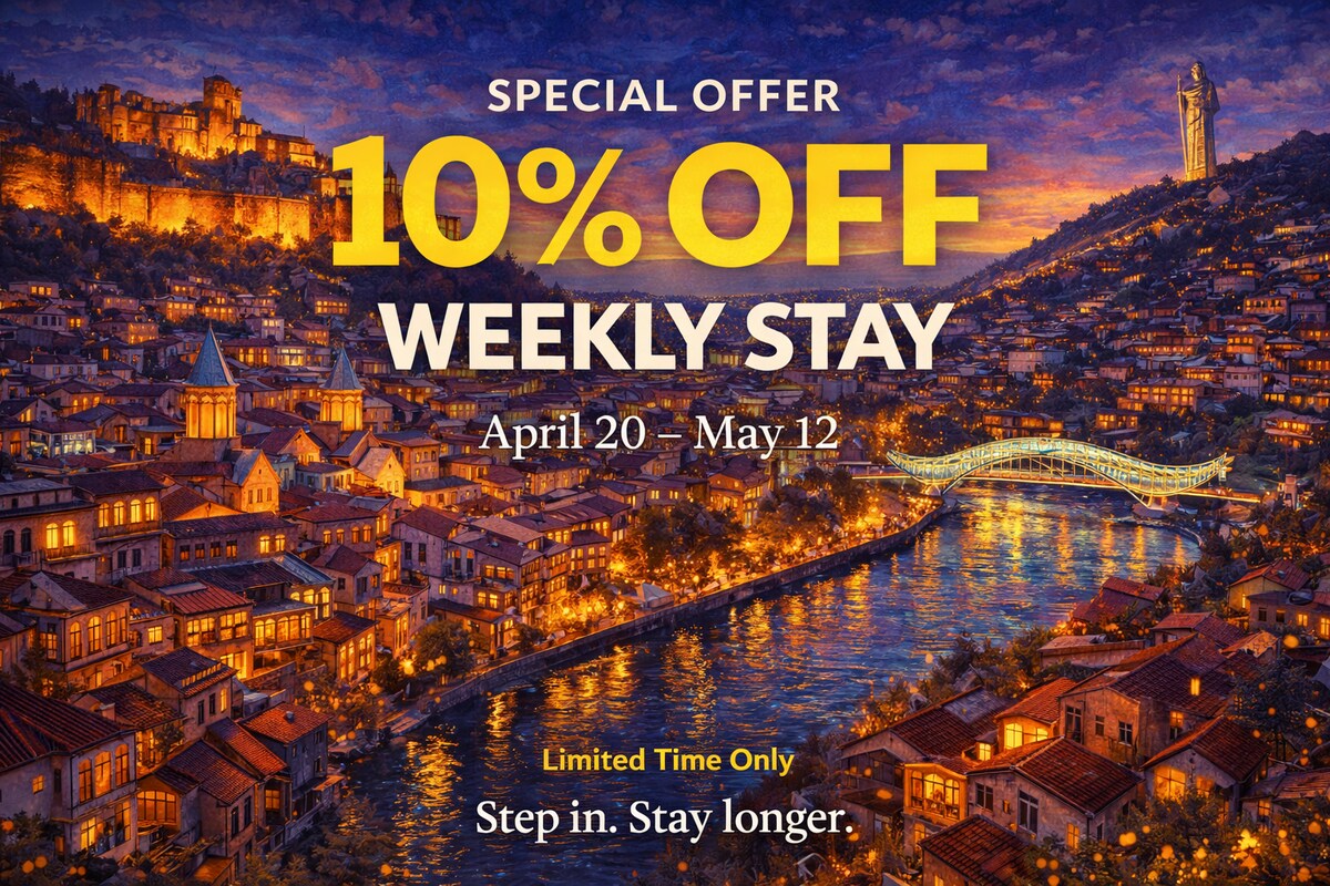 Looking for a comfortable, stylish & safe apartment in the heart of Old Tbilisi that will make your trip unforgettable? Want to experience living like a local, in a very nice ,ecologically pure,the most untouched and colorful place ? You have just found your apartment in Tbilisi. It is Mtatsminda (Holy Mountain ), where this fascinating and comfortable apartment with private entrance and big balcony is located.