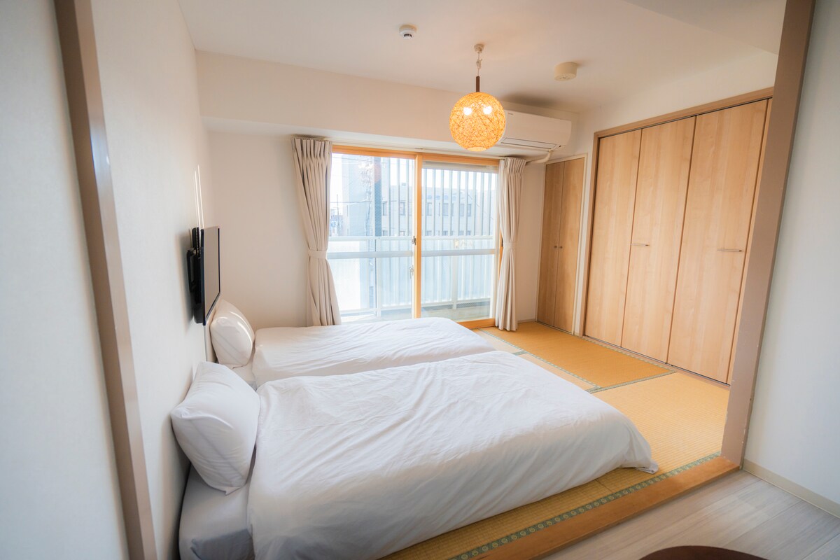 セミダブルサイズのベッドや長期滞在に必要なアメニティーが揃っています。 ベッドの幅は1台120cmです。 東京スプリング製の高級ベッドを使っています。 寝心地が良いと、ゲストの皆さんにとても評判が良いです。 レビューをご覧ください。 京都駅から地下鉄と徒歩で約15分で到着します。 最寄り駅は、地下鉄の烏丸御池駅(K08)から徒歩6分です。 京都市中心部に位置しているため、地元のグルメを堪能するのに最適な宿泊先となっております。 周辺には、京都らしい和食から洋食まで、多彩な飲食店が点在しています。 お客様におすすめのレストランをご紹介することも可能です。