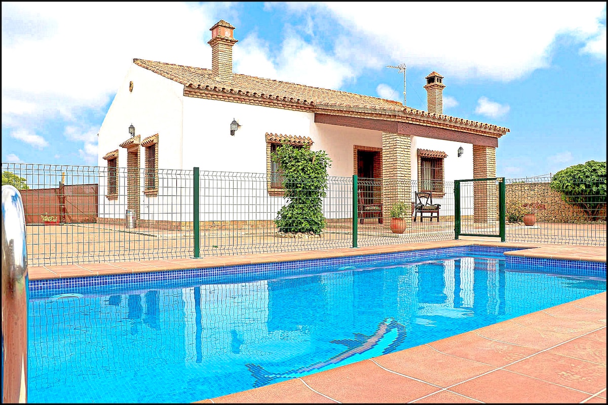夢幻般的房屋,帶有花園和溫水泳池,步行幾分鐘即可到達 La Barrosa 海灘,3 分鐘即可到達 Novo Sancti Petri 高爾夫球場。非常適合要求高的夫婦或家庭。在這棟配有溫水泳池、主臥室(附帶浴室)和兩間臥室(附帶獨立浴室)的房子裡度假。客廳配有壁爐和電視。從設備齊全的廚房可直接前往配有燒烤設備的戶外座位區。房子內有Wi-Fi。