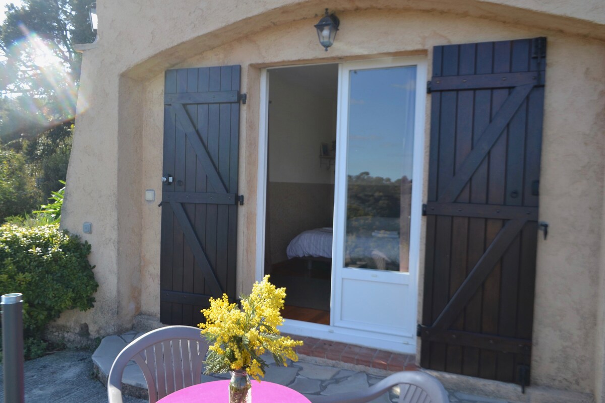 Au cœur du Massif du Tanneron, entre mimosas et forêt d'eucalyptus ,vous goûterez au calme et profiterez d'une nature colorée et odorante. Vous serez tout près des sentiers pédestres offrant des vues incroyables , et non loin de la mer (20 ' en voiture).Le logement vous apportera tout le confort nécessaire (entrée indépendante ,salle de bains privative) et vous pourrez vous détendre en dégustant au soleil votre petit- déjeuner face à un magnifique panorama. C'est un lieu paisible et convivial.