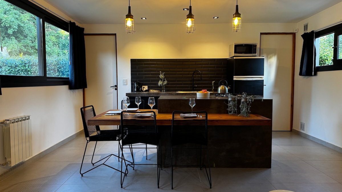 小木屋四周被大自然包圍,非常適合休息和放鬆身心。 享受美麗的日落、完全的寧靜以及所有舒適設施,度過輕鬆愜意的住宿體驗。 房源有一間臥室、舒適的客廳、設備齊全的廚房,以及可供享受戶外生活的戶外空間。 可使用泳池,並可選擇支付額外費用(需提前通知)開啟溫水功能。 非常適合情侶、親友入住或週末度假。
