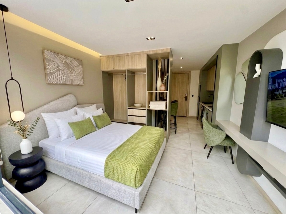 這個地方地理位置優越:計劃您的旅程將非常容易!靠近購物中心花園、Cci 和卡羅萊納公園,安全且獨特的地方,位於一棟全新的建築物中。 24 小時保安,迷你套房,裝潢非常溫馨舒適。可使用潮濕區域、健身房、瑜伽、遊戲區和電影院(需預約)。