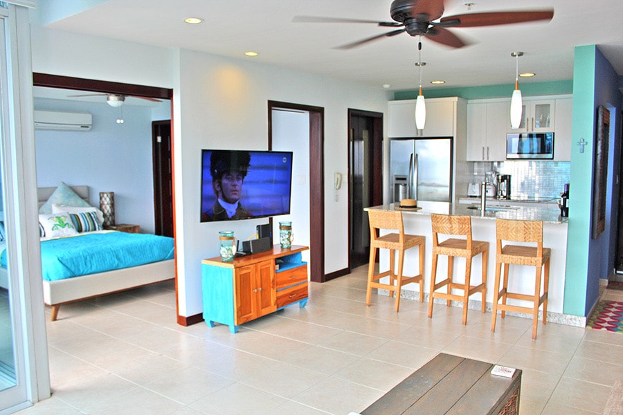 Modern new condo with breath taking views of the Pacific Ocean. We are in a beautiful new beach complex, Punta Caelo, with direct beach access, a beach club, and several large swimming pools. The Social Area is resort quality with deck chairs, infinity pools, billiards, children’s pools and pool beds. The apartment is open and spacious with a fully stocked kitchen and large terrace directly looking out over the ocean.