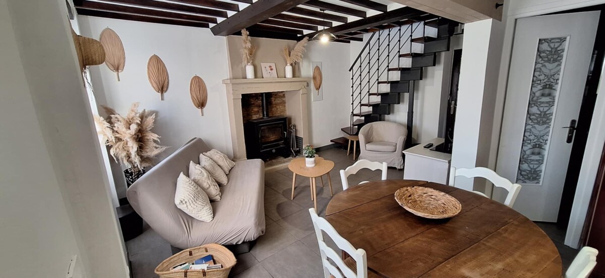 Maison à proximité des plages du débarquement, au calme de la campagne Normande. Notre maison est d'une capacité maximale de 5 personnes, elle se compose d'un double séjour équipé d'un canapé lit, espace salon avec télévision, salle de bain avec WC, salle d'eau avec WC, cuisine toute équipée. Une salle à manger Buanderie : lave-linge, fer et table à repasser. A l'étage: une mezzanine avec lit simple et un lit d’appoint. Une chambre avec lit double. Wifi Jardin clos avec garage fermant à clé.