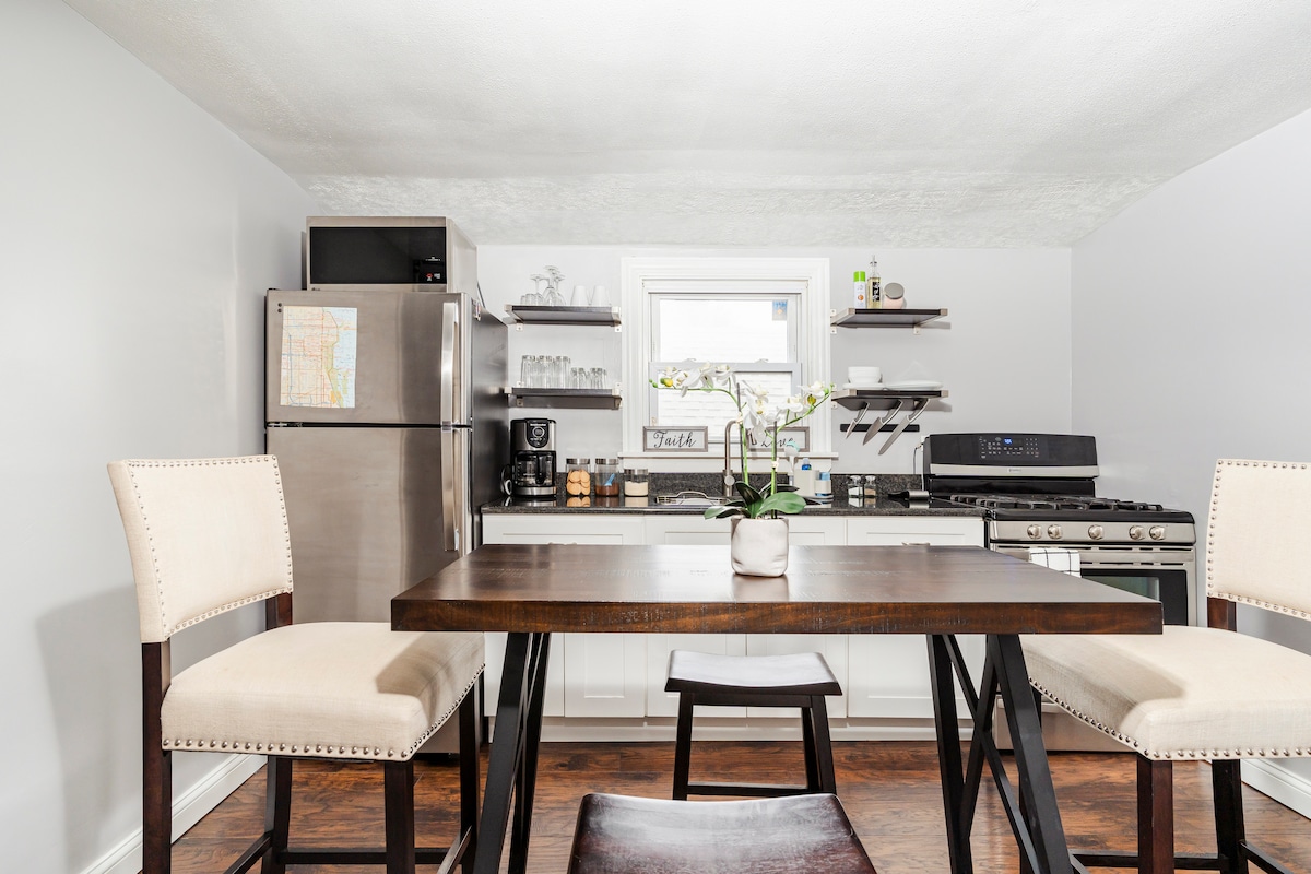 這間獨特的房源風格獨到。享受這間美麗、舒適的客用單間公寓,配有現代化的觸感和設備齊全的起居區域、配有迷你冰箱和微波爐的小廚房,在前往市區之前快速加熱一口,配有淋浴間和手持噴霧器的全功能浴室,幫助您在漫長的一天後放鬆身心。 配有Xfinity串流裝置的平面電視,讓您可以連接帳戶,享受您最喜愛的節目和電影,安靜入住。