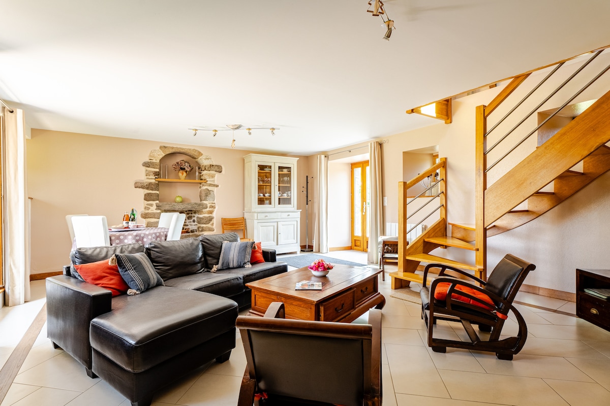 Détendez-vous dans ce logement calme et élégant. Au cœur de la Bretagne romantique, vous trouverez ce joli four à pain, complètement rénové en 2023. Ce gîte en pleine campagne de Combourg est chaleureux et entièrement équipé. Sa terrasse aménagée vous promet de belles soirées sous sa pergola et un bain de soleil dans ses fauteuils . Idéalement situé pour profiter du magnifique patrimoine Breton, à quelques encablures du bord de mer à une demi-heure du Mont Saint Michel et de Saint Malo,