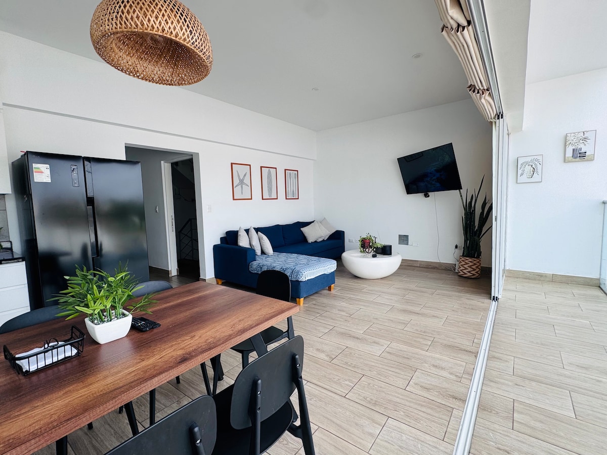 寬敞舒適的海景公寓。非常適合與家人或朋友一起享受。它有 3 間臥臥室、2 間浴室、廚房、客廳、餐廳、服務區(包括一間帶浴室的臥室)和一個帶泳池的露臺,可欣賞最美的日落。 馬利海灘大樓,塞諾里塔斯海灘,蓬塔赫爾莫薩