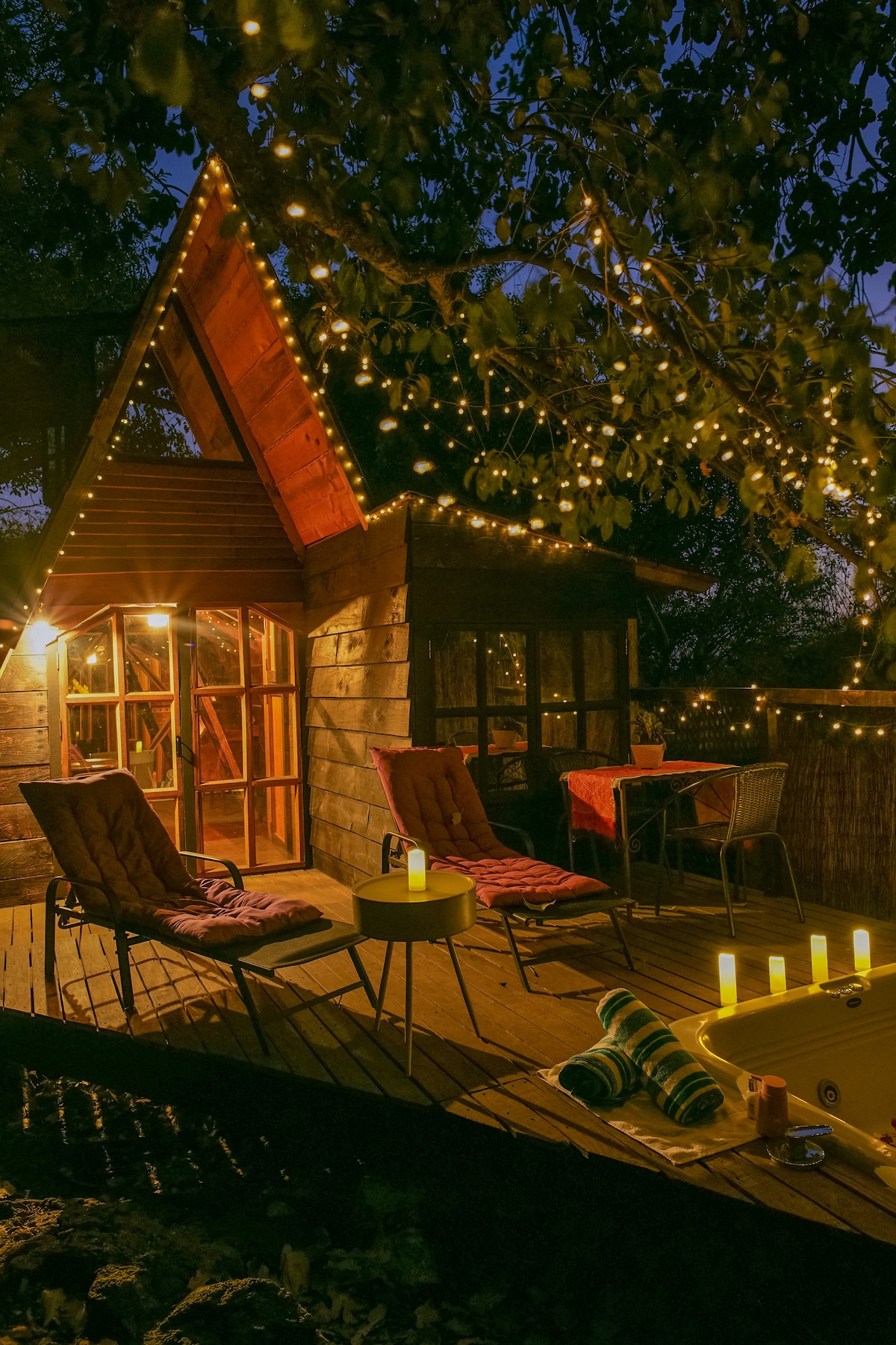 配備按摩浴池的小木屋