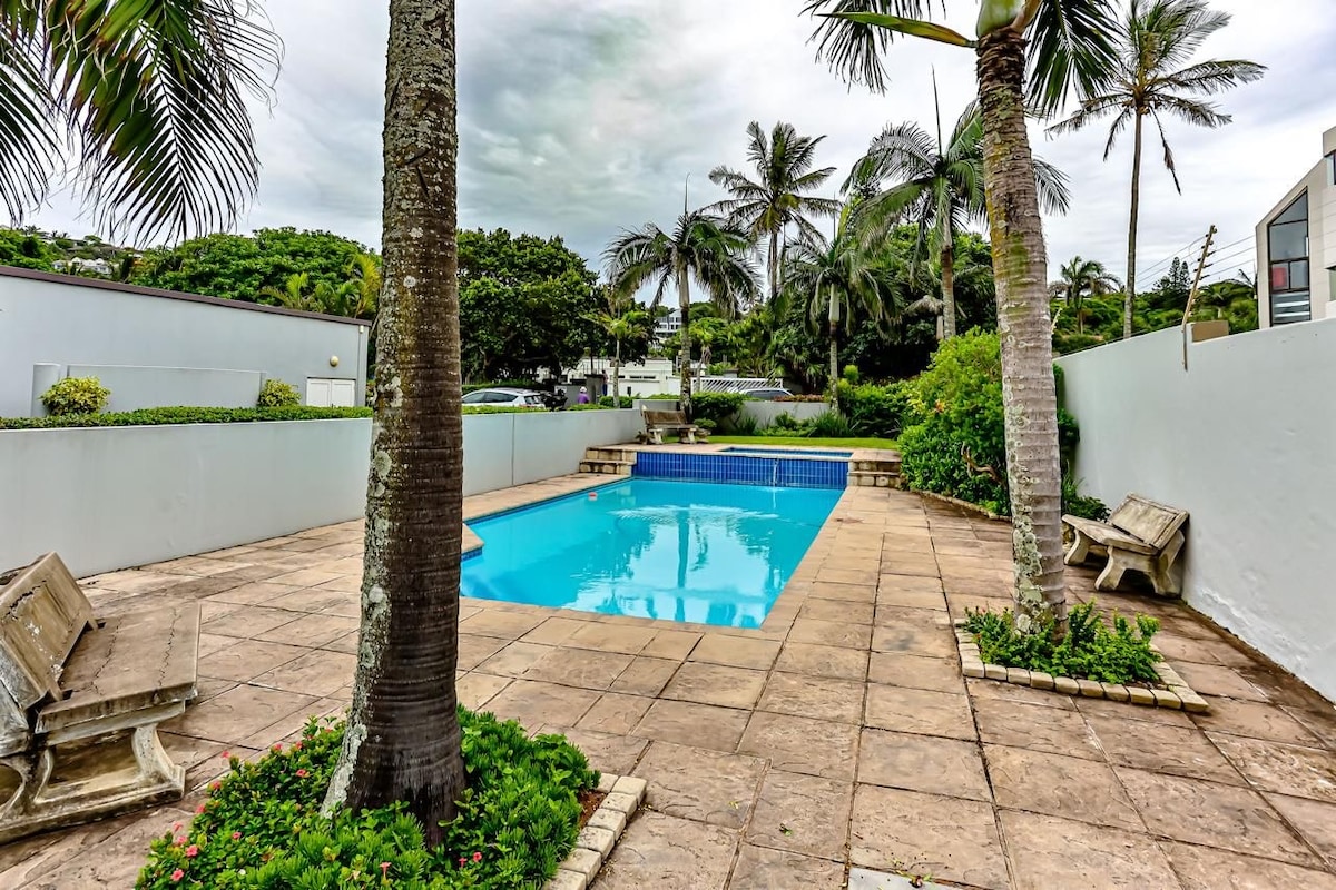 寬敞的4間臥室、4間浴室、開放式公寓,位於Ballito的主要海灘(Willard Beach )和海濱步道。整套房源都有空調。從有天然氣烤肉架的遮蔭露臺可欣賞海浪的景色。設備齊全的廚房,包括冰箱/冷凍櫃、微波爐、烤箱、爐台、洗碗機、滾筒式烘乾機、Nespresso咖啡機。 Wi-Fi。雙車庫和2個泊車位。大樓內有游泳池。步行即可抵達商店。 我們不接受Matric Rage預訂。此建築群不適合寵物入住