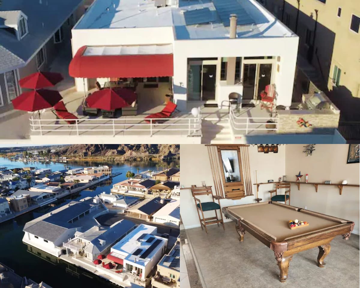 想享受科羅拉多河和您自己的私人泳池嗎?這間兩間臥室、兩間浴室的房源提供您可能需要的一切物品,讓您放鬆身心,享受浪漫度假或有趣的家庭聚會。 走進這座很棒的聖塔菲風格的房子,您會首先注意到的是粘土瓷磚,它們會引導您前往寬敞的起居區,那裡有很多座位和一張雙人沙發床。房子配備了室內和室外使用的環繞音響。提供付費泳池加熱器。