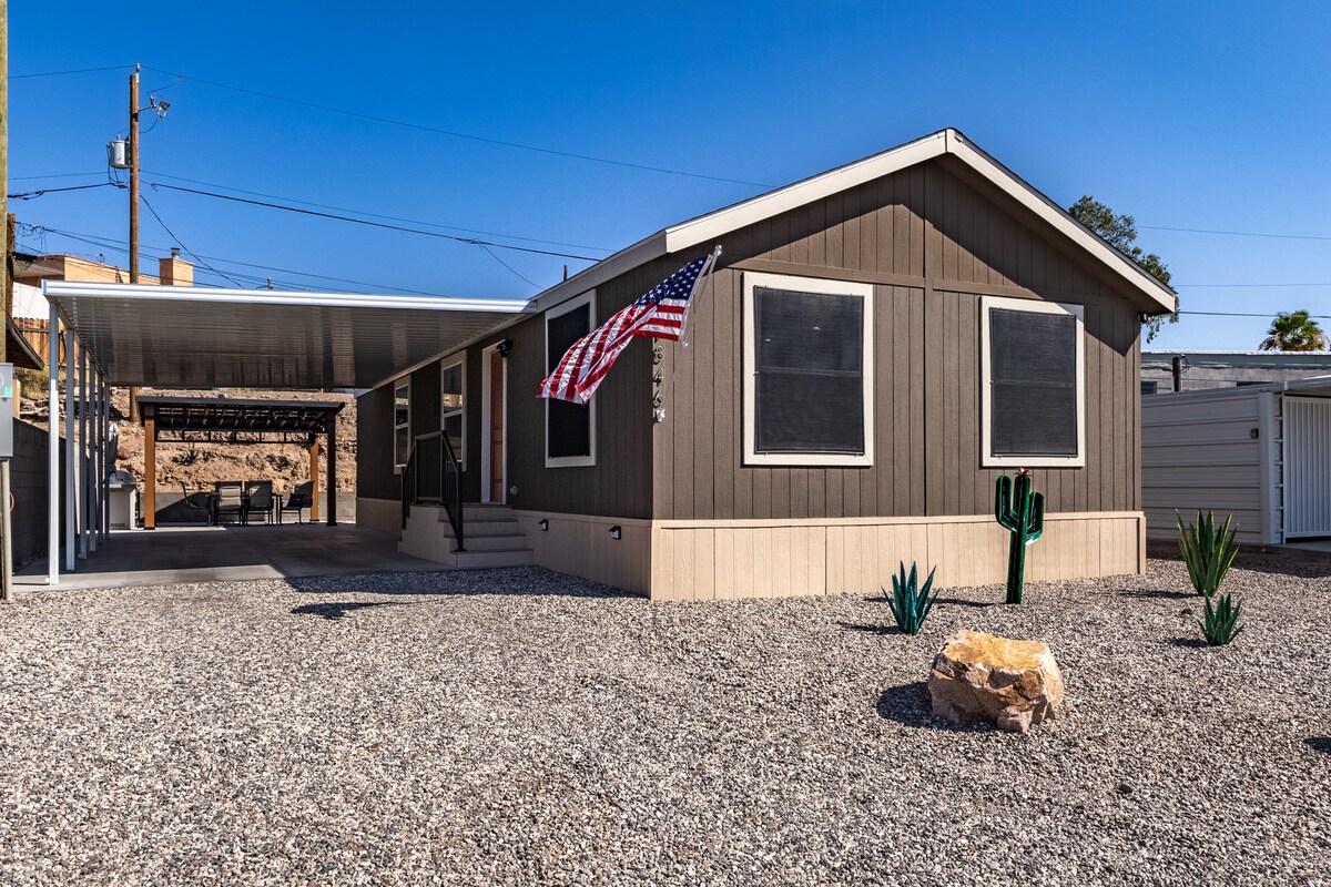 Newly Remodeled home with Water Access! 1 master w/ king bed, 2nd room w/ full beds and 3rd room with queen bed 85-inch LED TV in the living room BBQ Grill Private launch ramp in a gated community Close to Road Runner, Sundance Saloon, Fox's and Blue Water Casino Fully stocked coffee machine in the kitchen Extra HOA Boat Trailer parking next lot over. Close to 4 Launch Ramps and two Beaches. Pets welcome up to 2 $50/each non-refundable