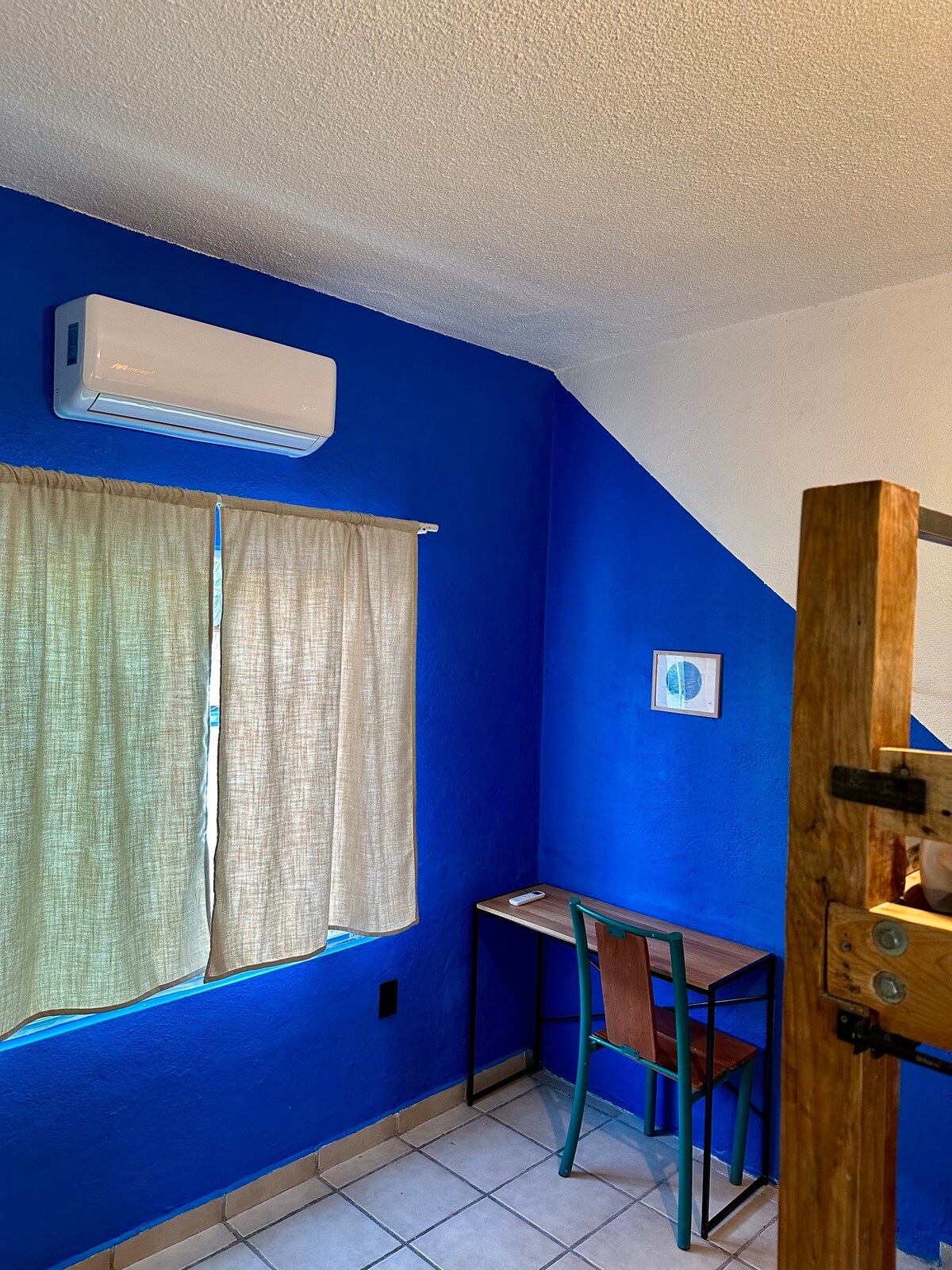 La habitación que tenemos disponible para ti cuenta con una litera, un locker amplio para guardar tu equipaje, aire acondicionado y wifi en toda la propiedad. De baño compartido