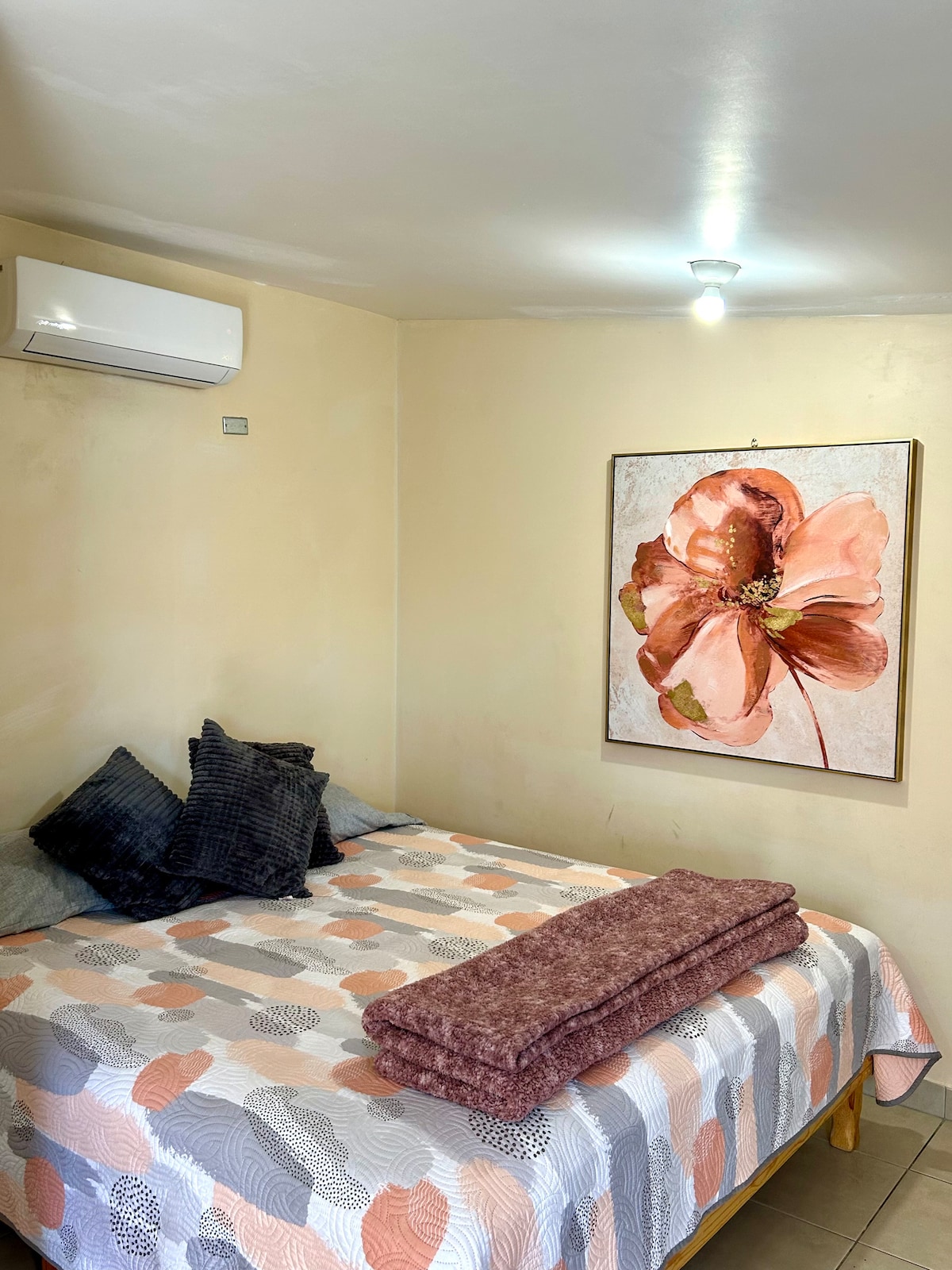 單間公寓,開車5分鐘即可抵達海濱大道。配有智慧電視、加大雙人床、空調、浴室、鍋爐、熨斗、小餐廳、冰箱、小廚房、基本廚房用品、咖啡機、攪拌機。WiFi 只有花園和烤肉架是共用的。 距離市中心大道 2 個街區:有加油站、超市、藥店、Oxxo、壽司店、烤雞、漢堡、冰淇淋店等 下午 3 點至晚上 10 點入住 上午 11 點前退房 任何區域均禁止吸煙或吸毒