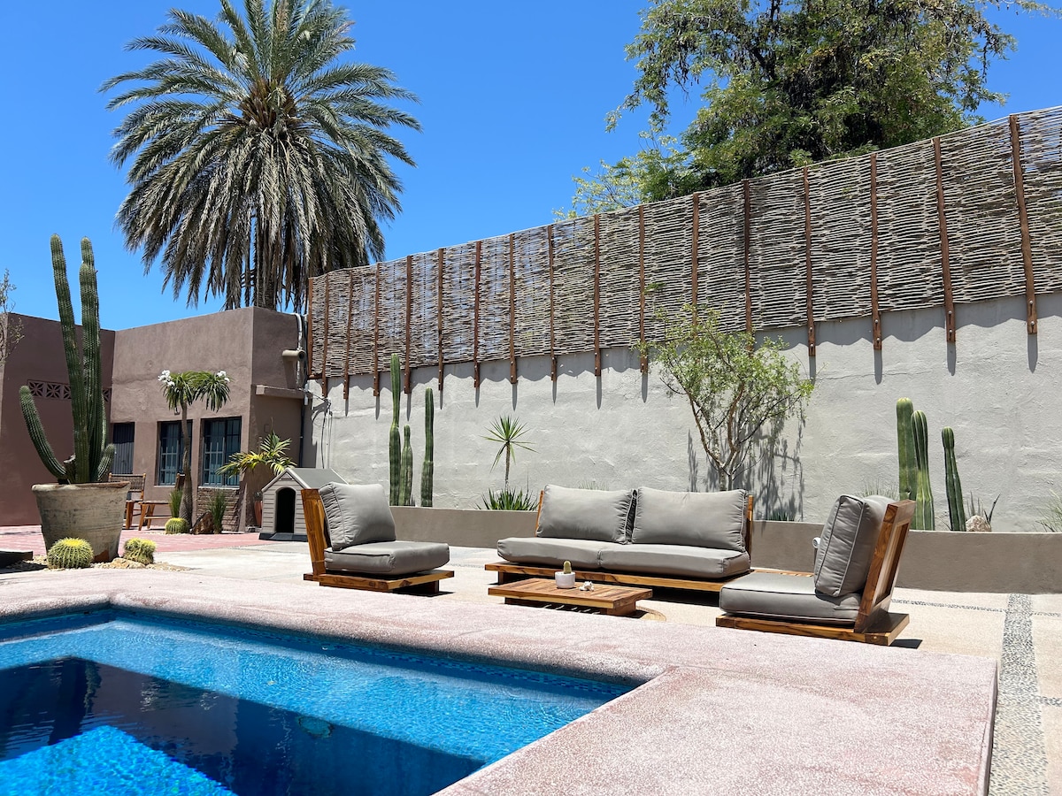 Este alojamiento único tiene mucho espacio para que disfrutes con tus acompañantes. Ideales para grupos pequeños, familias, amigos, parejas. Un espacio creado para tener una estancia llena de Paz y disfrutar del clima que nos ofrece la Baja Sur. Cuenta con un área común compartida con la casa donde yo vivo de excelente tamaño con alberca, camastros, comedor exterior, sala, baño completo, asador, jacuzzi calefactado. Estaremos encantados de recibirlos en casa.