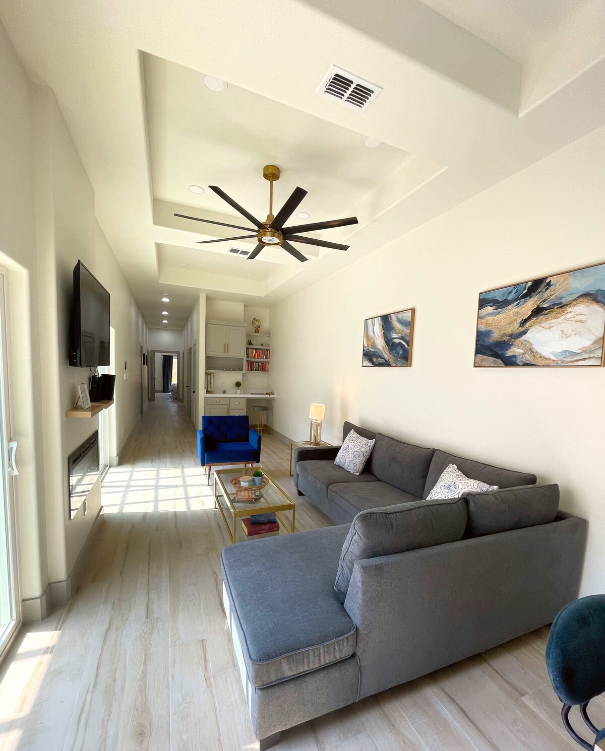 娛樂區的隱藏瑰寶,附近有很多餐廳,距離海灘一個街區,可欣賞拉古納馬德雷(Laguna Madre)的煙花和日落的風景如畫的景色,SPI遷徙鳥類保護區就在後院旁邊。在噴泉旁尋找寧靜,四周環繞著花朵和鳥鳴,同時在色彩繽紛的露臺上放鬆身心,沒有鄰居會打擾您。採用折衷裝飾和工業外觀,配有開放式天花板和手工製作的臥室家具。
