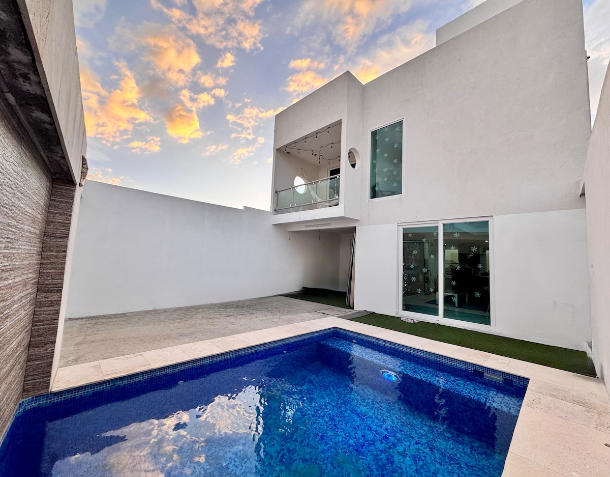 在這個獨特的家庭住宅中創造難忘的回憶。 裝潢精美、舒適、安靜、光線充足的房子。 非常適合安靜的日子、休息、工作或玩樂,因為它們設有美麗的浴缸、燒烤、可欣賞美麗景觀的屋頂花園、公共區域:屋頂和溫水泳池、兒童遊戲、戶外健身房、燒烤籃球場和綠色區域。 家庭或情侶環境。 配有WiFi和設備齊全的廚房。
