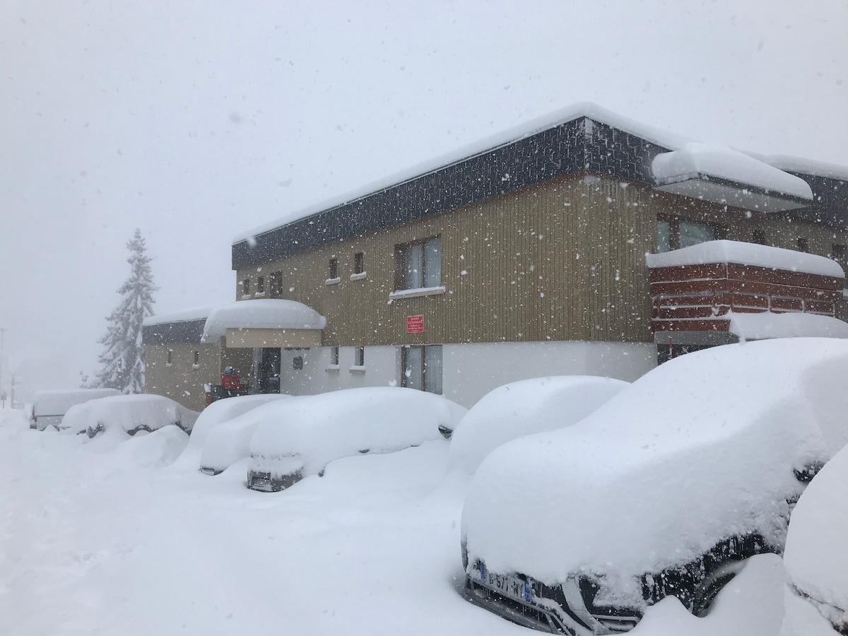 位於拉羅西耶爾(La ROSIERE)的中心,Residence Le Belvedere,毗鄰滑雪纜車(最近的步行150公尺,Rocher Noir步行450公尺),滑雪回來。新翻修( 2024年12月由我的伴侶和我)近40平方公尺的複式公寓,非常舒適和設計感,景觀令人難以置信。面向南/西,可欣賞令人驚嘆的日落。 位於商店和餐廳旁邊。距離滑雪商店Intersport、麵包店和起司店僅30公尺。在住宿期間不需要開車。 適合4-5人入住。